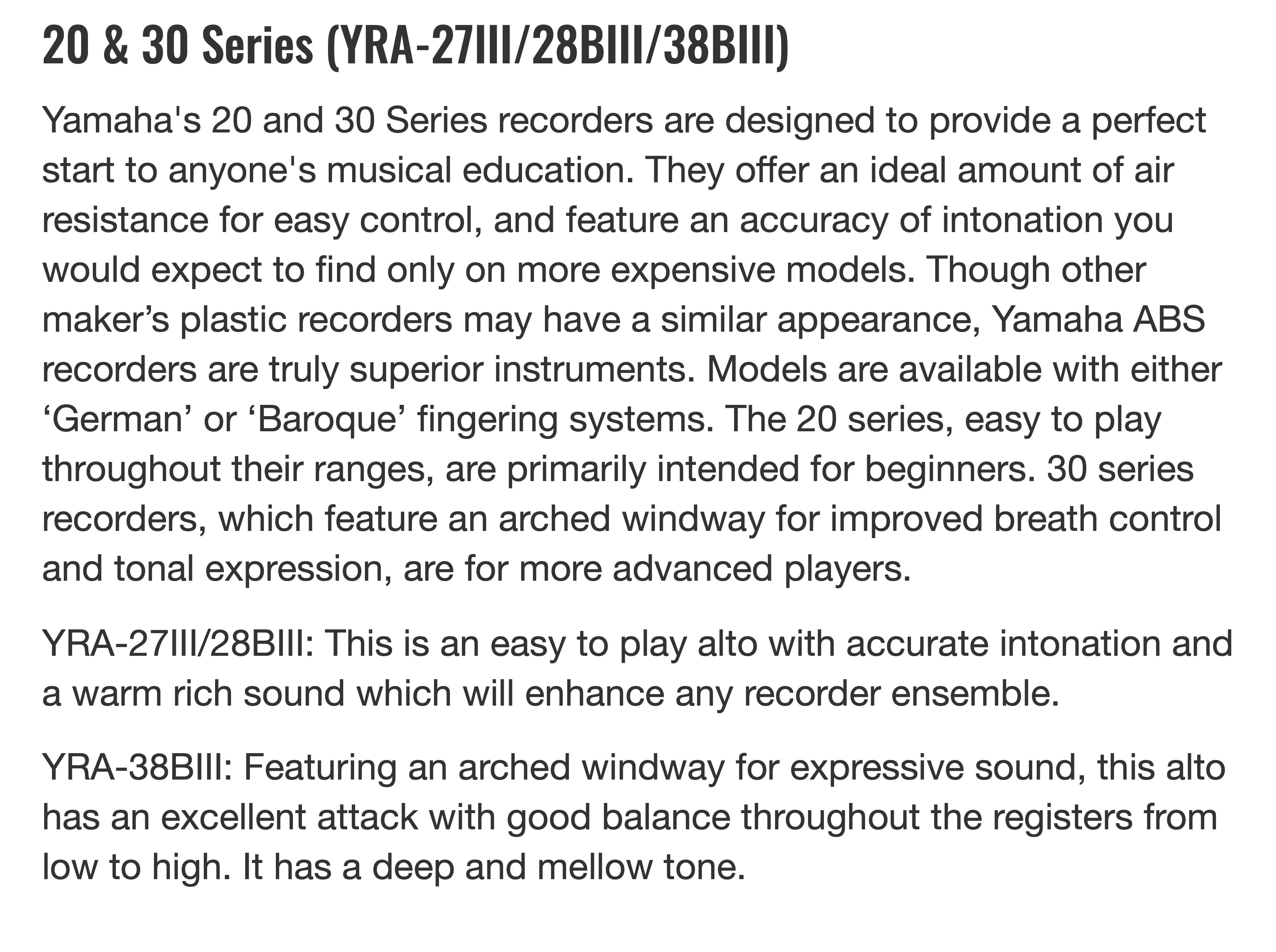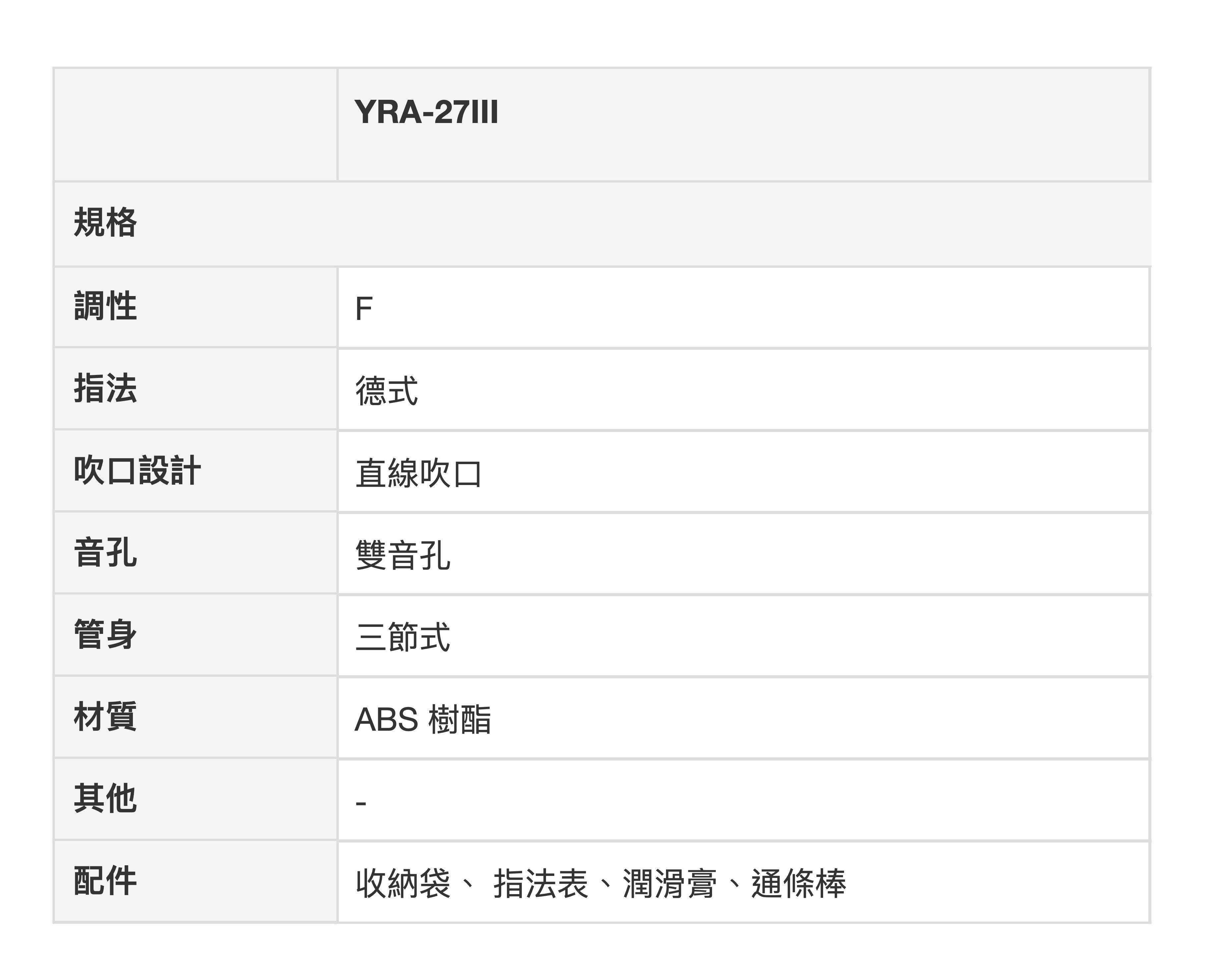 中音直笛 YAMAHA YRA-27 III YRA27 德式 F調
