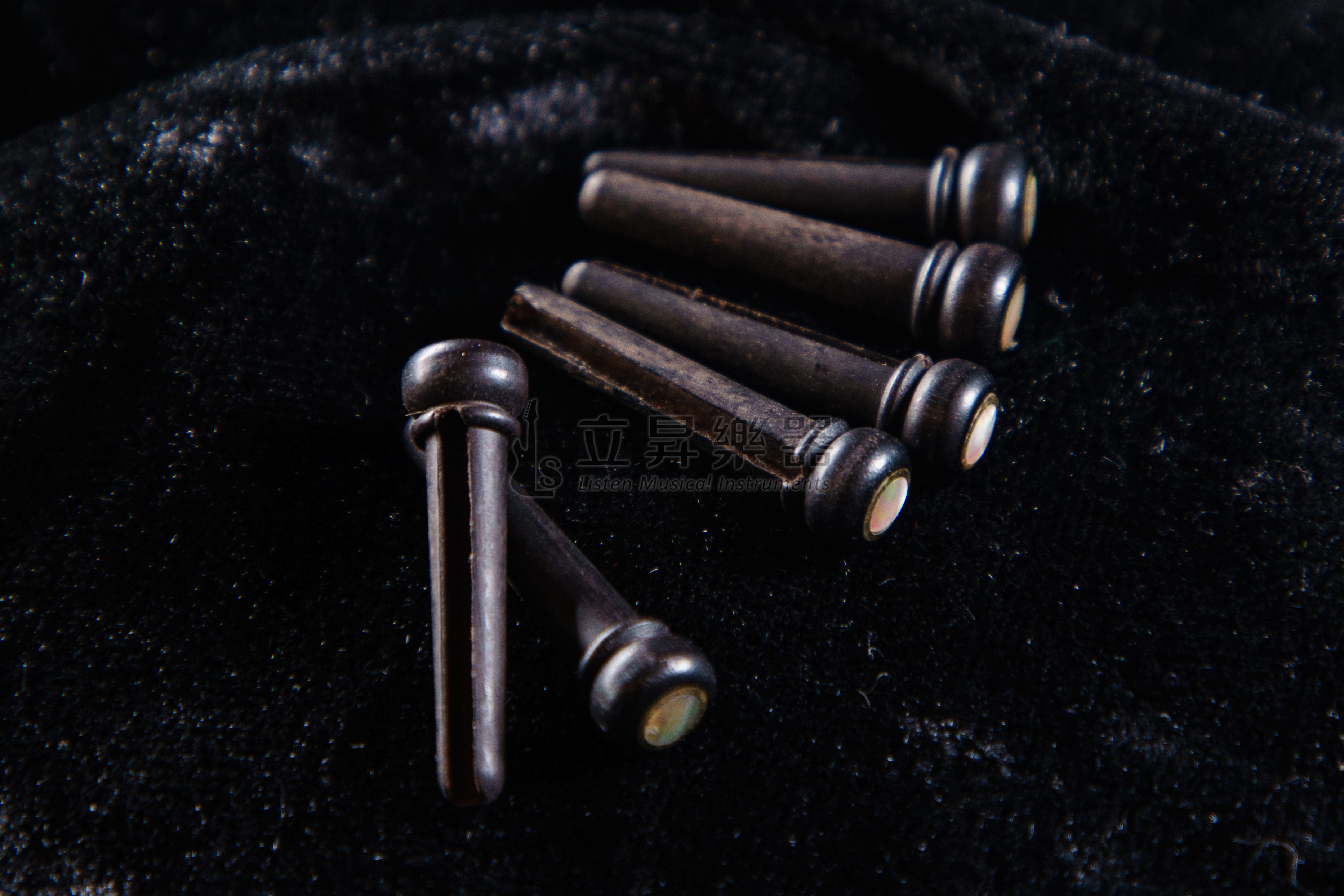 木質弦釘的聲音溫暖、柔軟,且又自然,可以帶出吉他本身最原始的音色,黑檀木弦釘為質地較硬的木質,音色厚實溫暖 , 有延音增長的效果 。