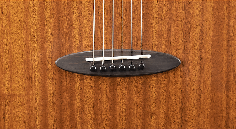 鳥吉他定製的橢圓造型琴橋,使用硬度較高的玫瑰木,能支撐琴的後段琴弦張力。搭配水牛骨弦枕,讓琴的延音有力,且擁有純淨的音色,質地堅硬清脆,能有效的傳導琴弦的共鳴。每一根弦都做了個別補償,讓琴能有更精准的音准。