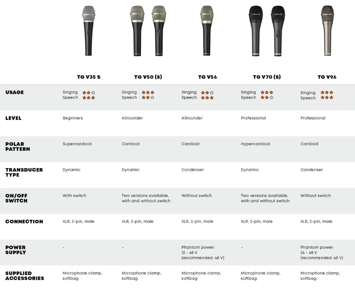 雖然 TG V70 沒有開關,但它的兄弟 TG V70 s 確實有一個可鎖定的嵌入式開關,集成在手柄中。無論您是創作歌手還是音響工程師,不同的版本確保您能找到適合您的麥克風。