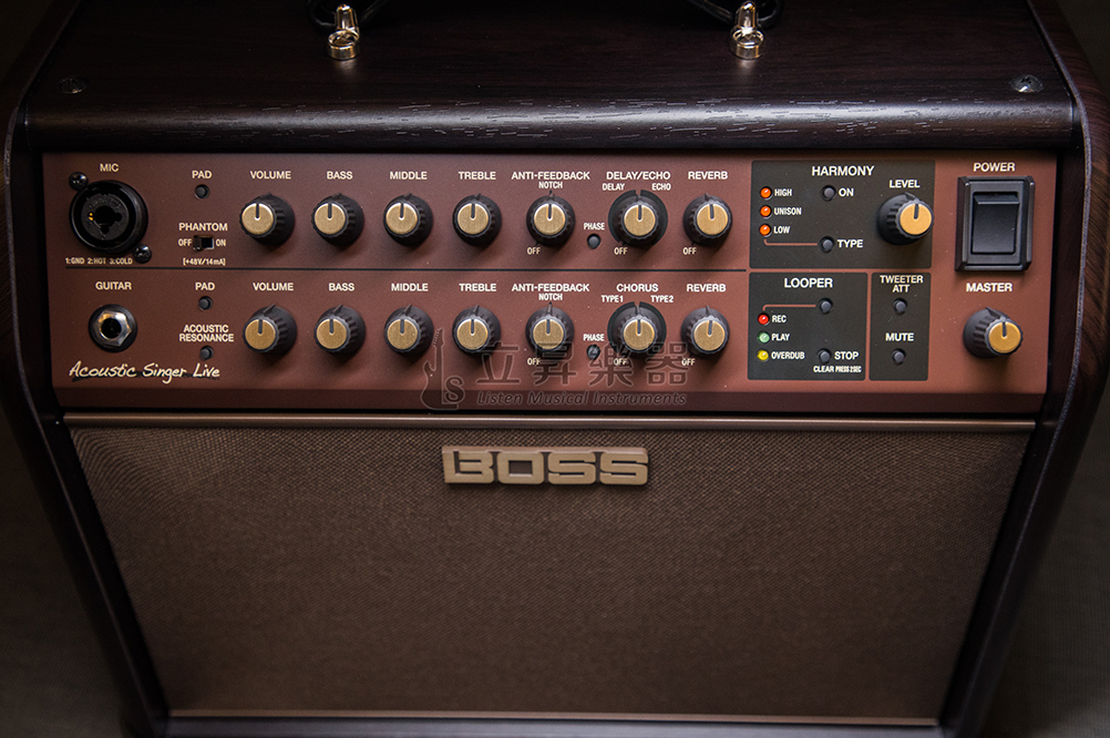 Acoustic Singer Live的出現,使木吉他舞台擴大音箱的聲音品質與音樂功能提升到一個新的層級。結合BOSS在擴大音箱研發上的最新進展,這款緊湊而強大的音箱,提供豐富、響亮的聲音,具有無與倫比的魄力與清晰度。為木吉他與人聲提供獨立的頻道,每頻道配備分離的類比輸入電路,以及三段EQ可展現錄音室級的音質。還有其他例如Acoustic Resonance、loop、自動人聲合音、效果器等等其他功能,Acoustic Singer Live所配備的一切,能讓音樂表演者展現的最動人而且強而有力的現場表演。
