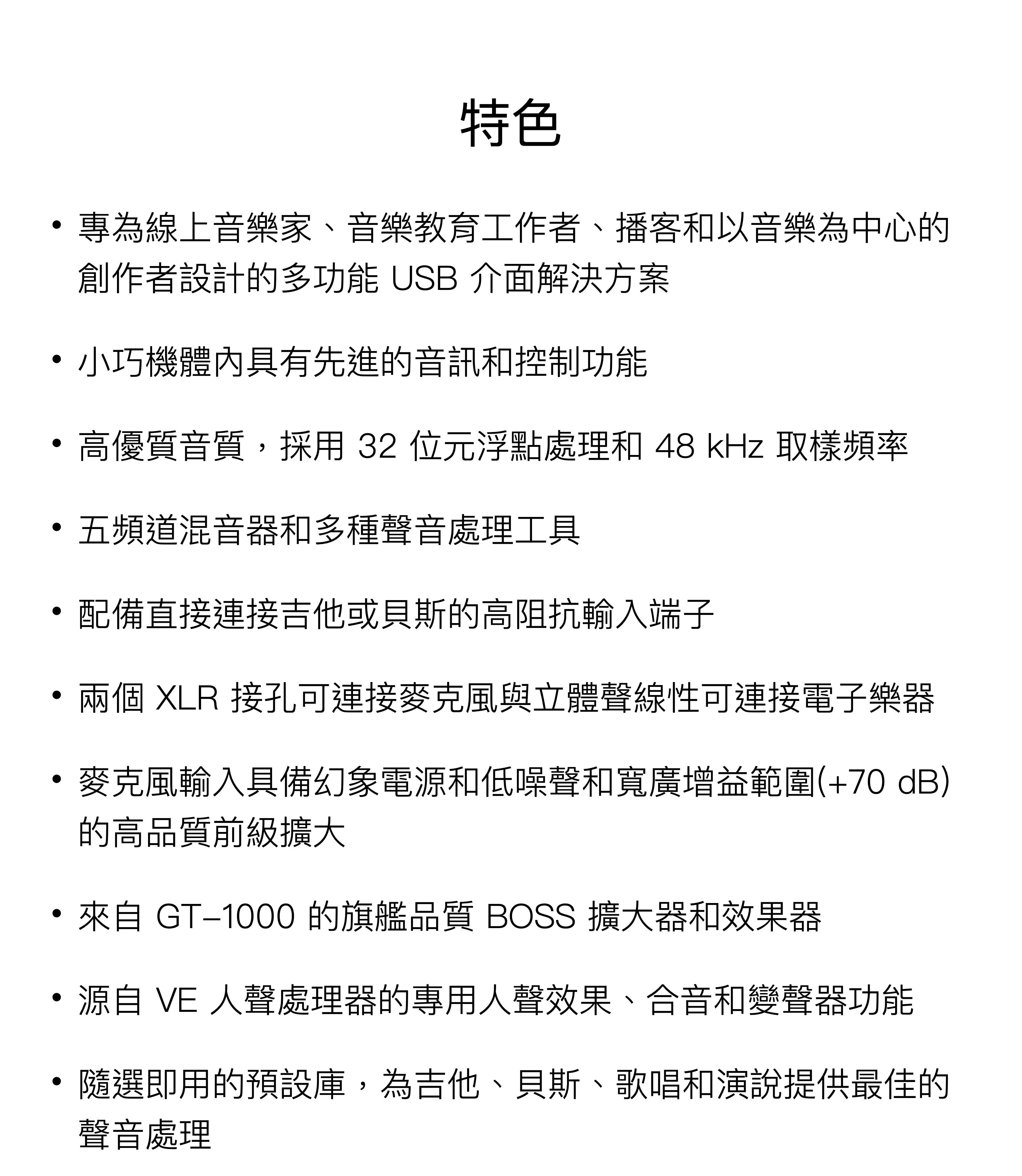 ⬛ 高優質音質,採用 32 位元浮點處理和 48 kHz 取樣頻率