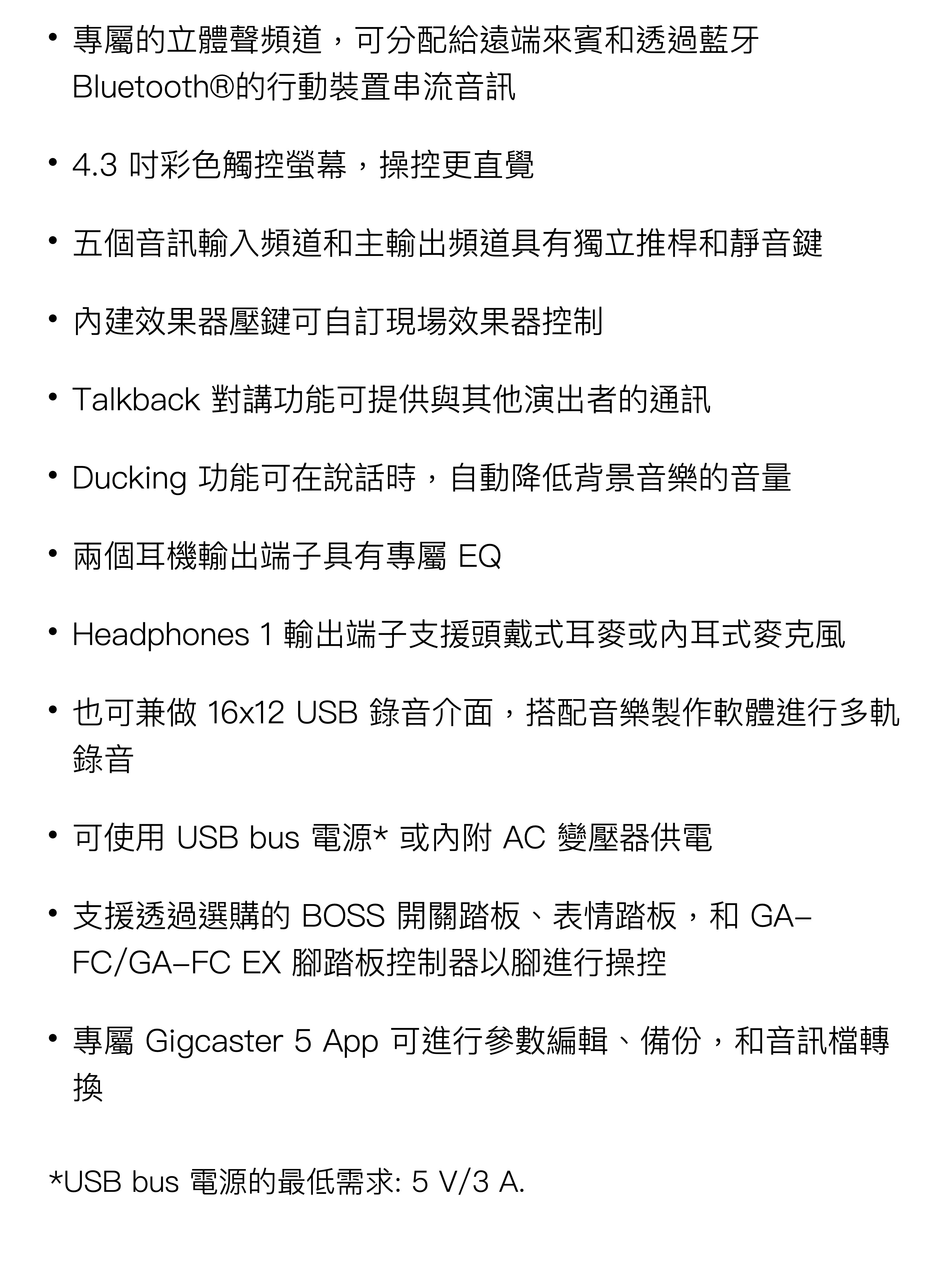 ⬛ 專屬的立體聲頻道,可分配給遠端來賓和透過藍牙Bluetooth®的行動裝置串流音訊