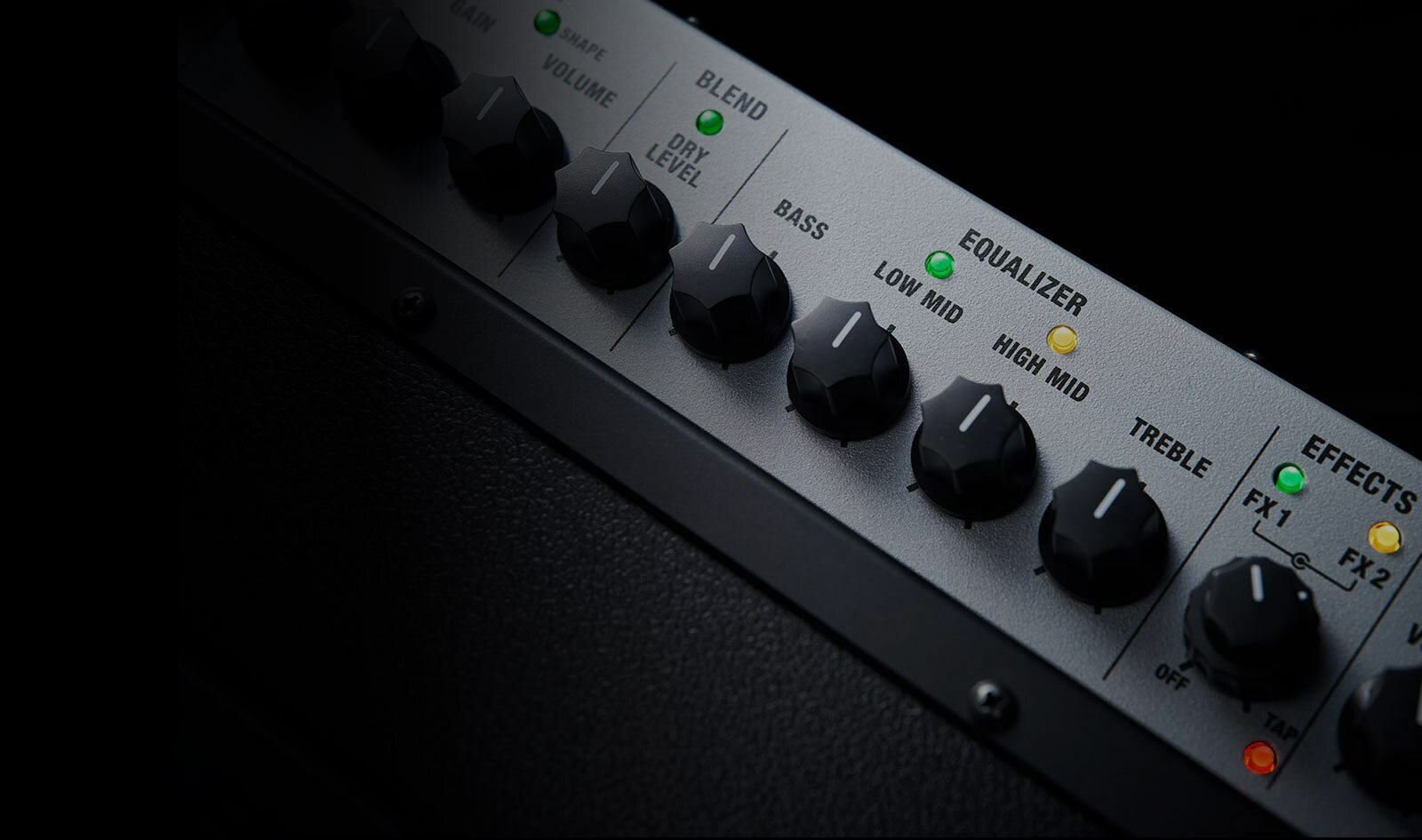 透過 Katana-110 Bass 直覺的面板控制裝置,您可以快速微調您的音色。如錄音室裡的 Blend 功能,可讓您混合一些 dry 訊號,您可以在面板上使用三個可自設的設定,讓您能夠進行預先調節,以實現最理想的音質融合。配備全面的四頻帶等化器,在低-中頻和高-中頻段具有三個可選的不同頻率中心。