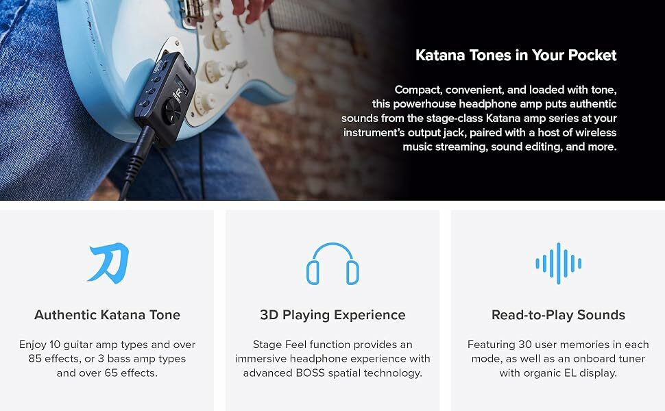 全新 BOSS Katana:Go 為各吉他手提供全新練習體驗!內建 10 多種不同舞台級 Katana 經典擴音器音色,以及 60 多款效果器 🤩 配合 BOSS 獨有 Stage Feel 功能,令音色還原度大大提升!同時可透過 藍牙 或 USB-C 連接手機或個人電腦,搭配 BOSS Tone Studio app 調整參數,甚至進行錄音!