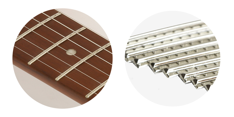 琴衍必須製作得足夠精確,即使是輕微的錯誤也會對音高產生很大的影響。此外,由於品絲的精加工和精加工對演奏手感有重要影響,因此需要精確的微動加工。Corona Standard Plus ST 使用鎳制的中號Medium Jumbo,結合緊密,精雕細琢,不會出現廉價樂器常見的鋒利品絲邊緣,也不會因溫度和濕度而容易改變水平度。