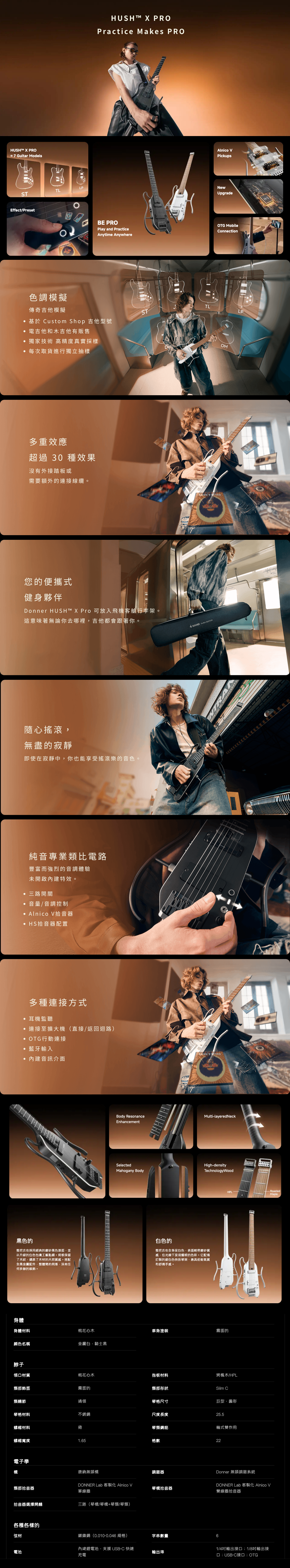 ※專業手感: 一體式接柄與非對稱漸變式琴頸。