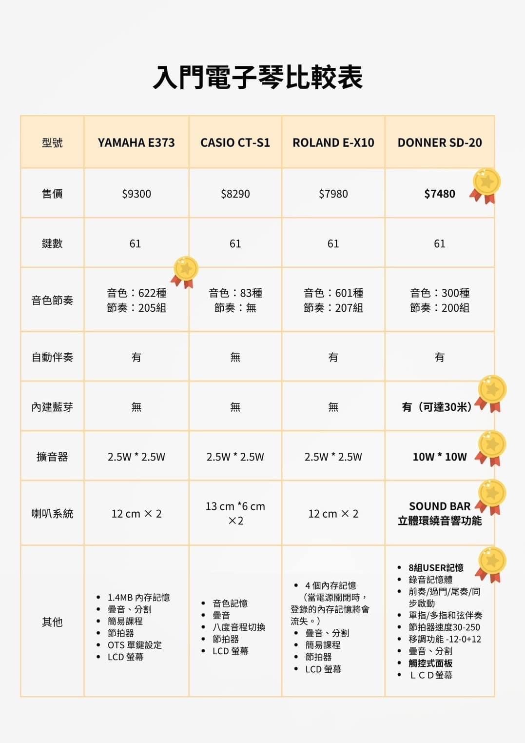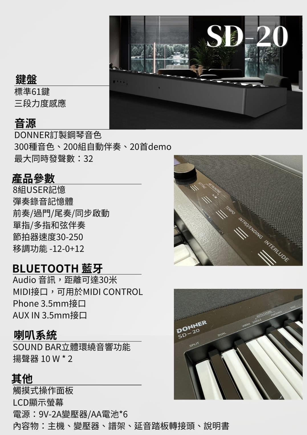 【現貨供應】DONNER SD-20 61鍵 入門級 電子琴 自動伴奏 內建SoundBar立體聲環繞音響