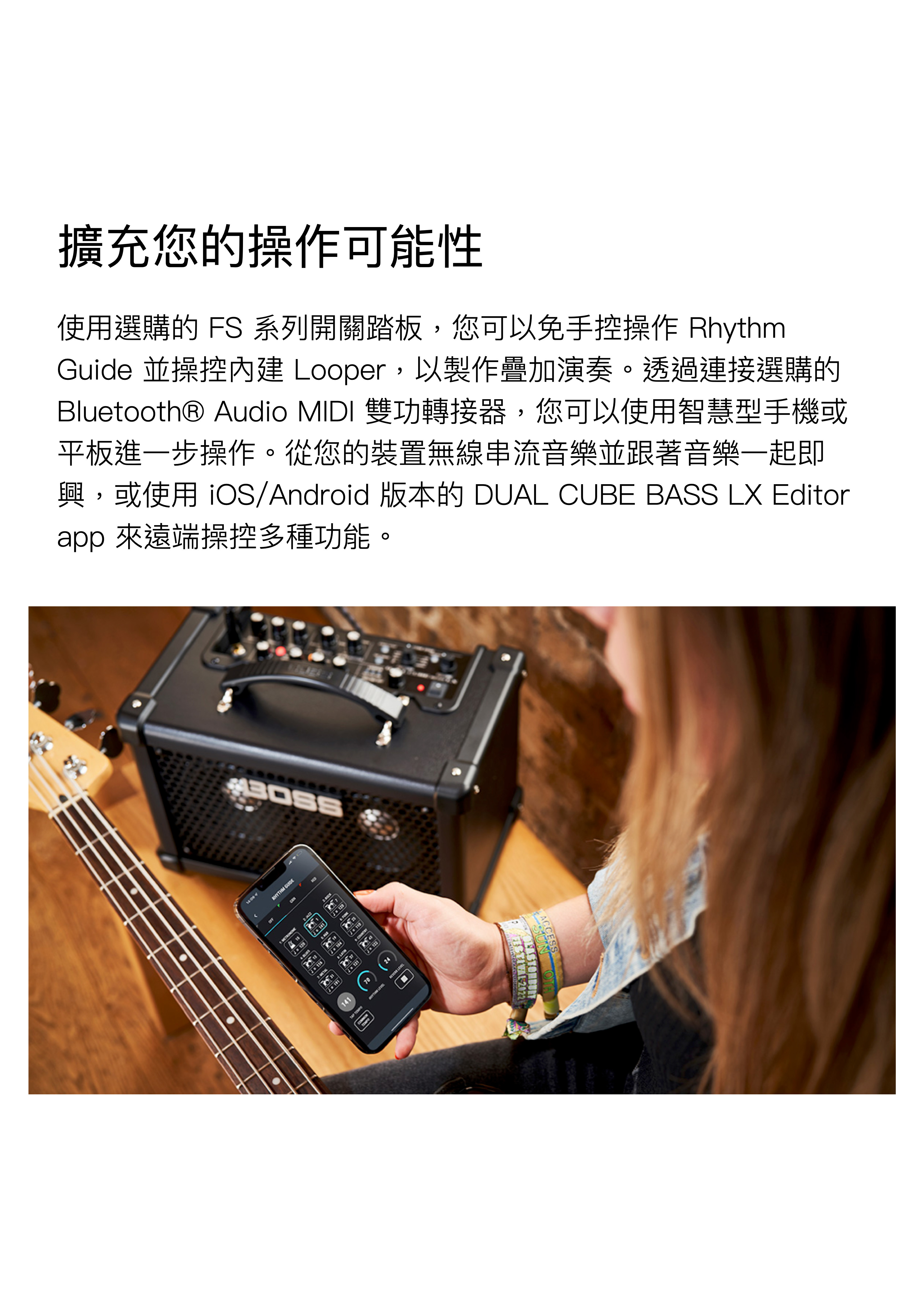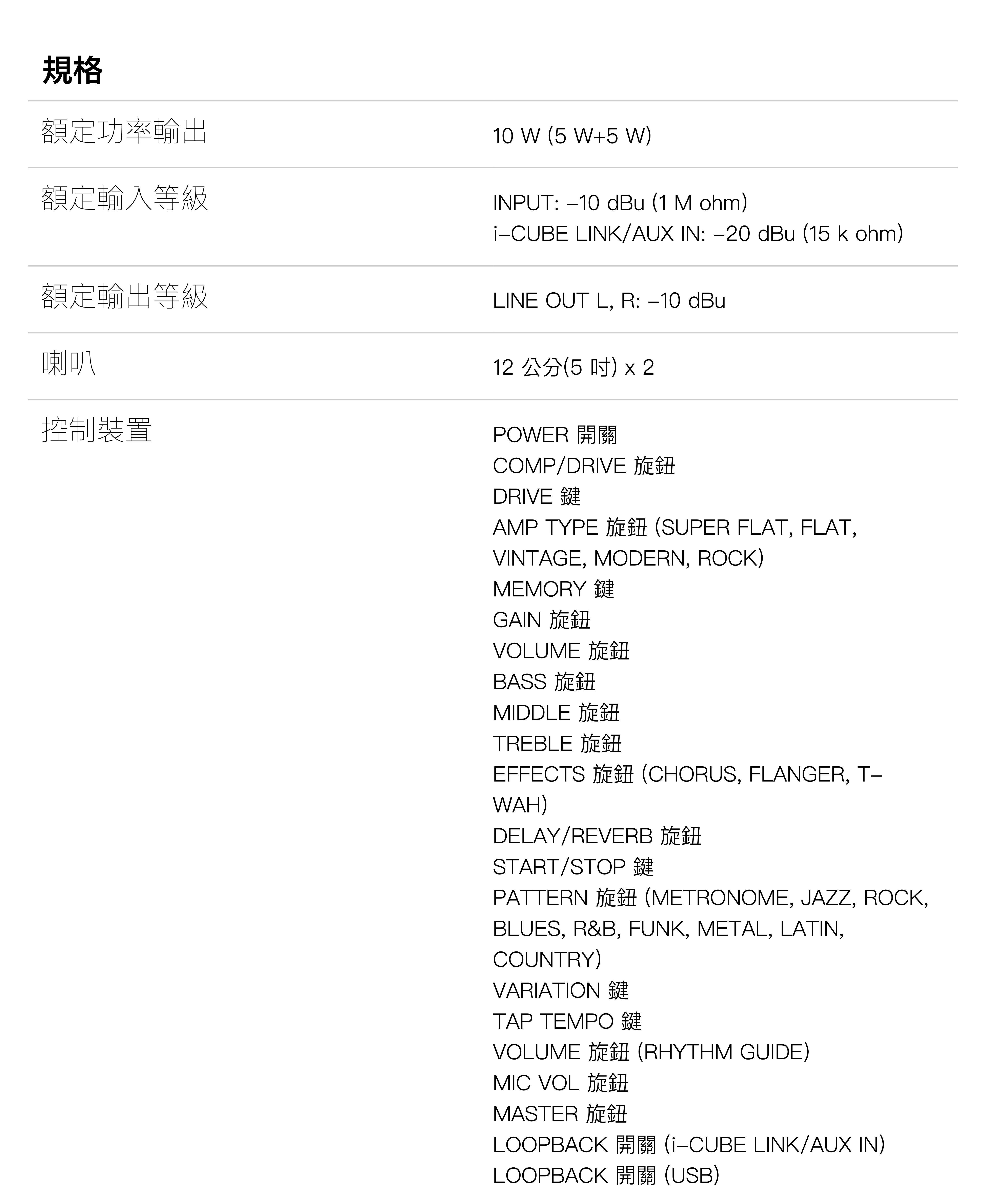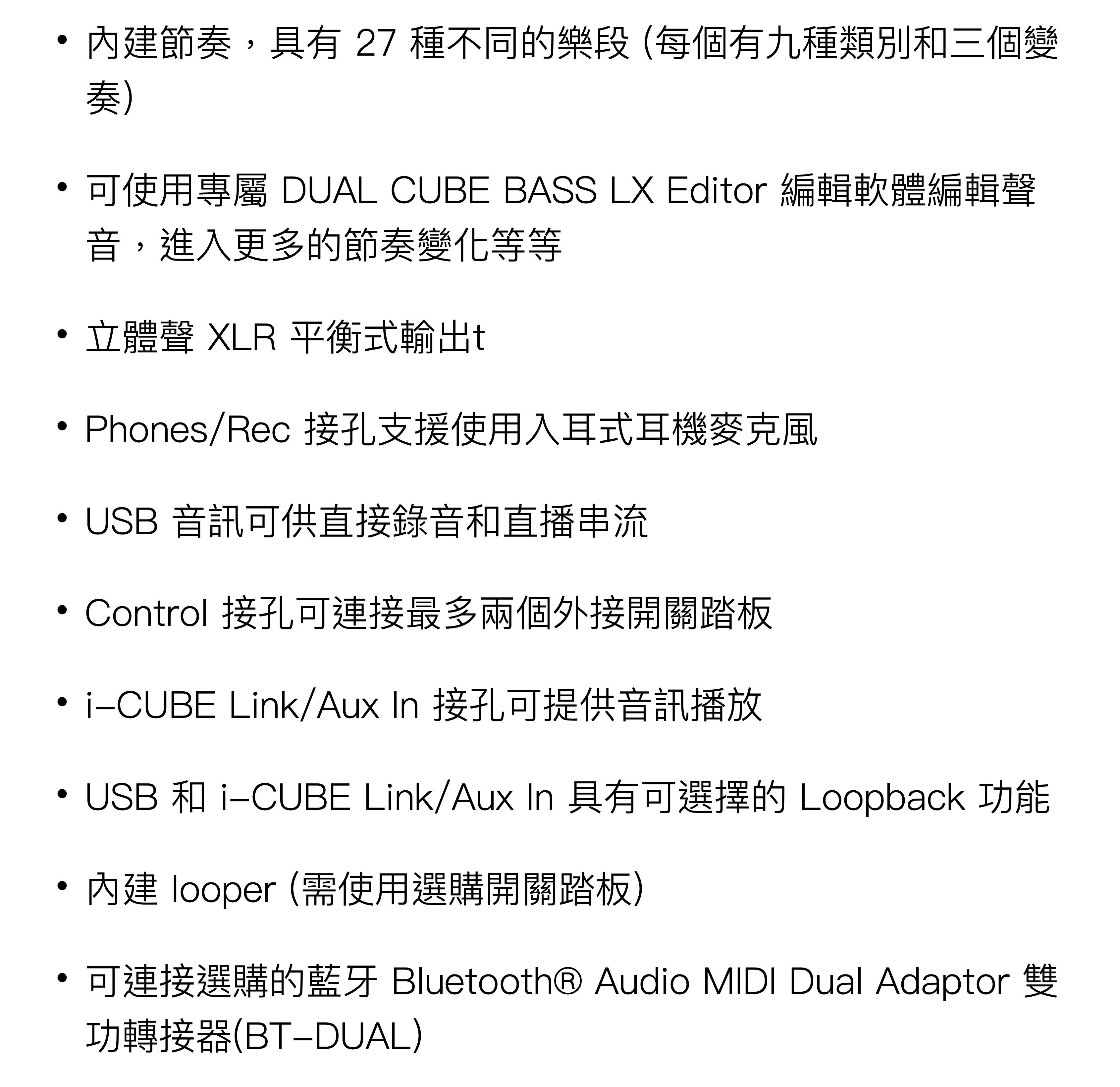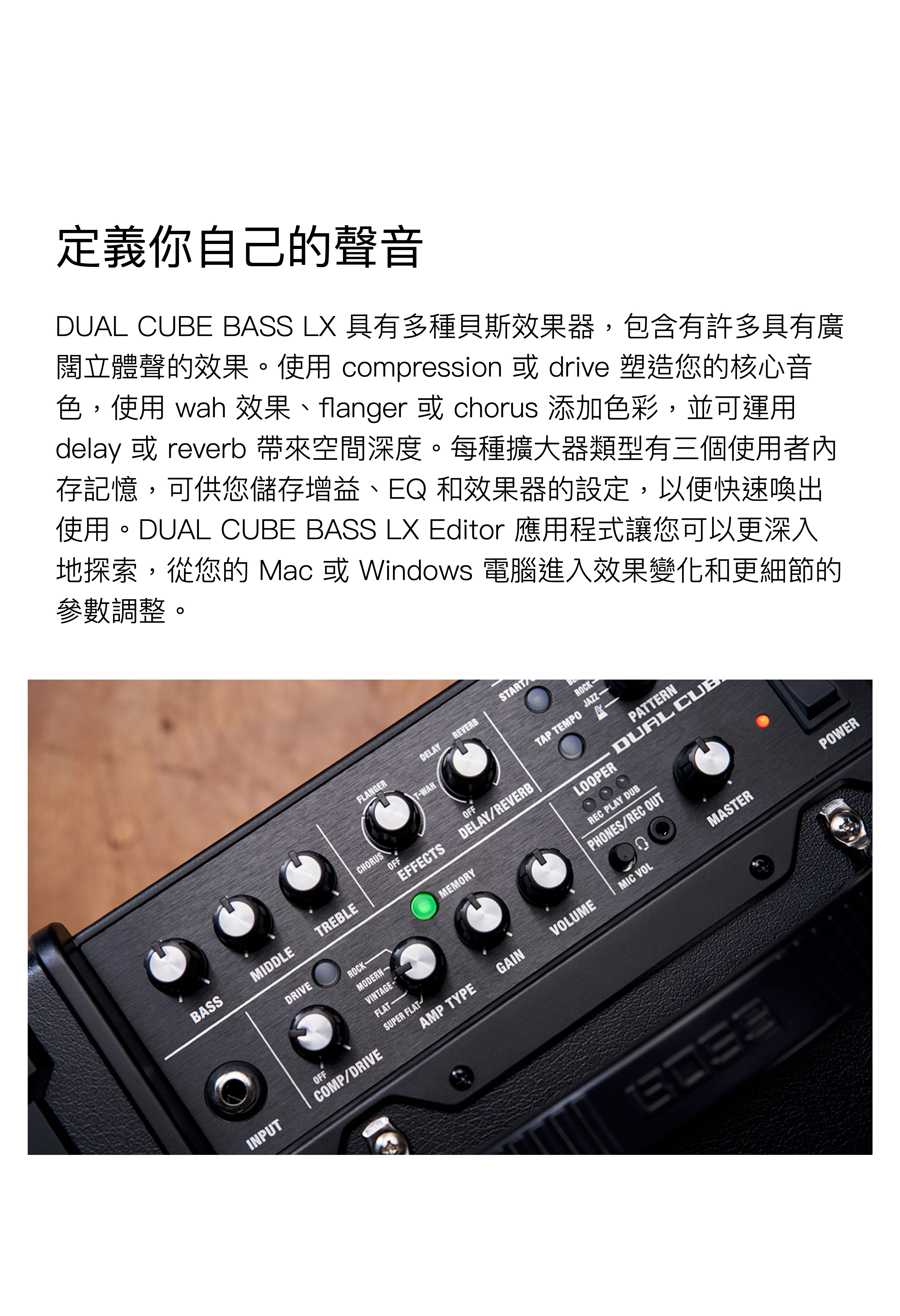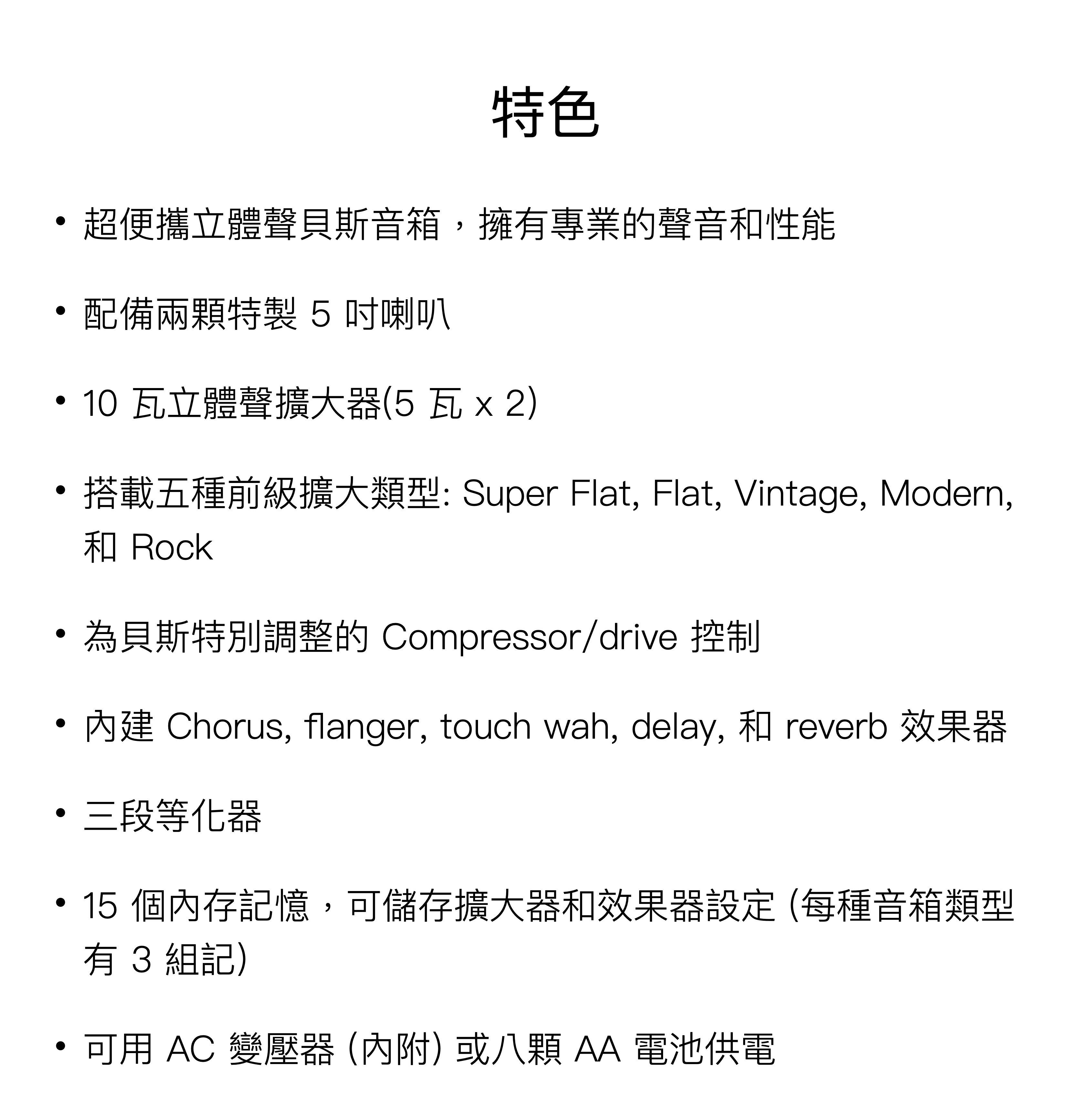 -內建 Chorus, flanger, touch wah, delay, 和 reverb 效果器