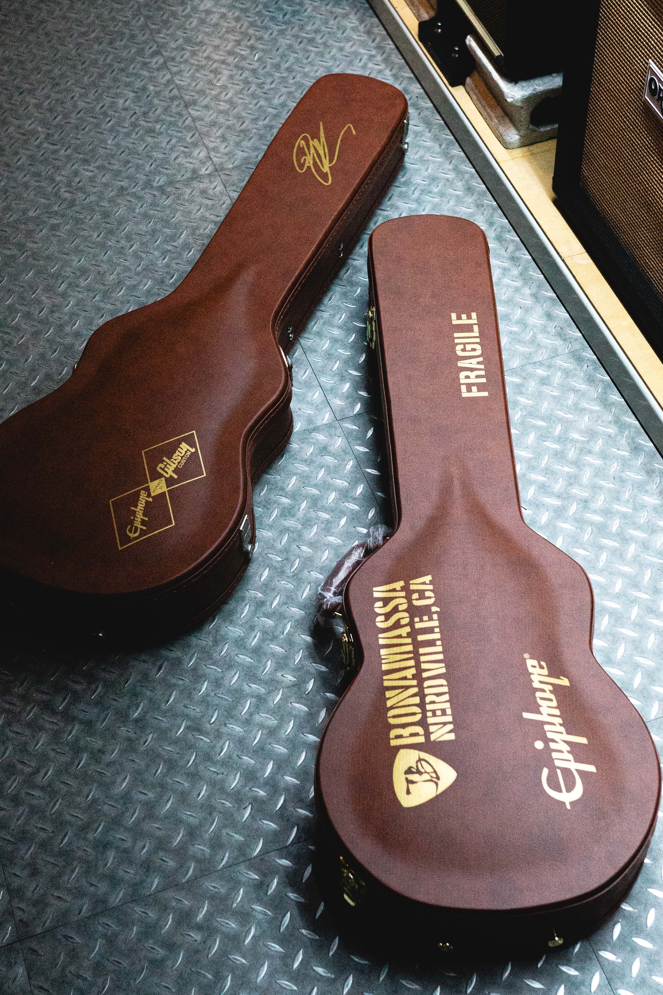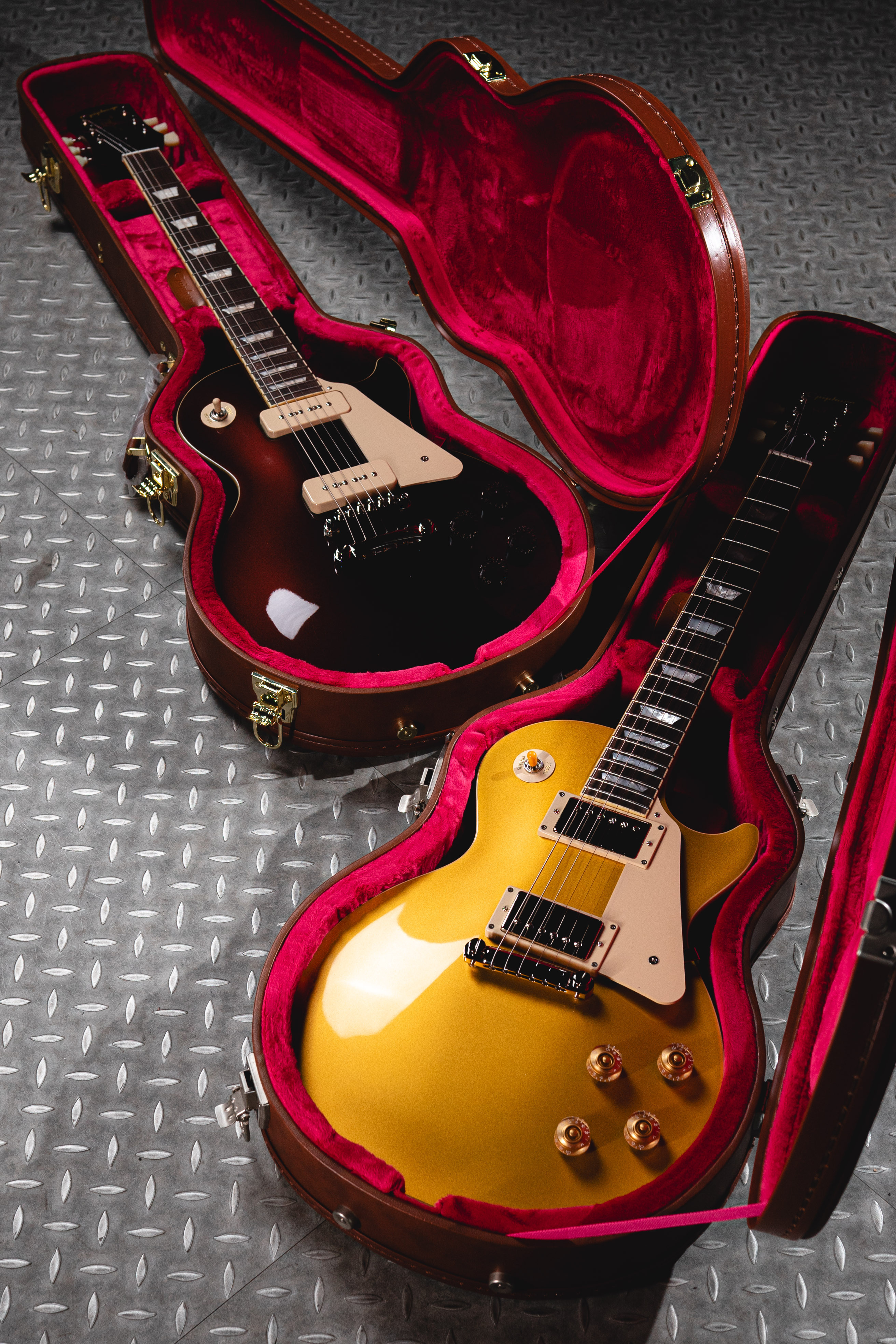 桃花心木琴身搭配楓木琴蓋,C 形琴頸和月桂木指板,Epiphone P-90 PRO 拾音器,CTS 電位器,Mallory 電容器,50 年代線路,棕色/硬殼琴盒