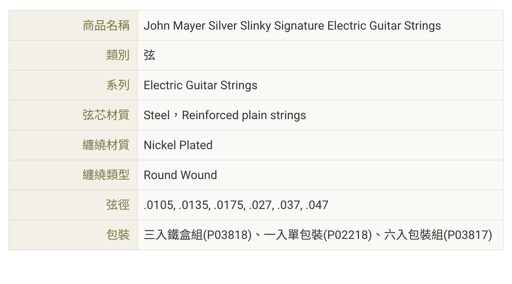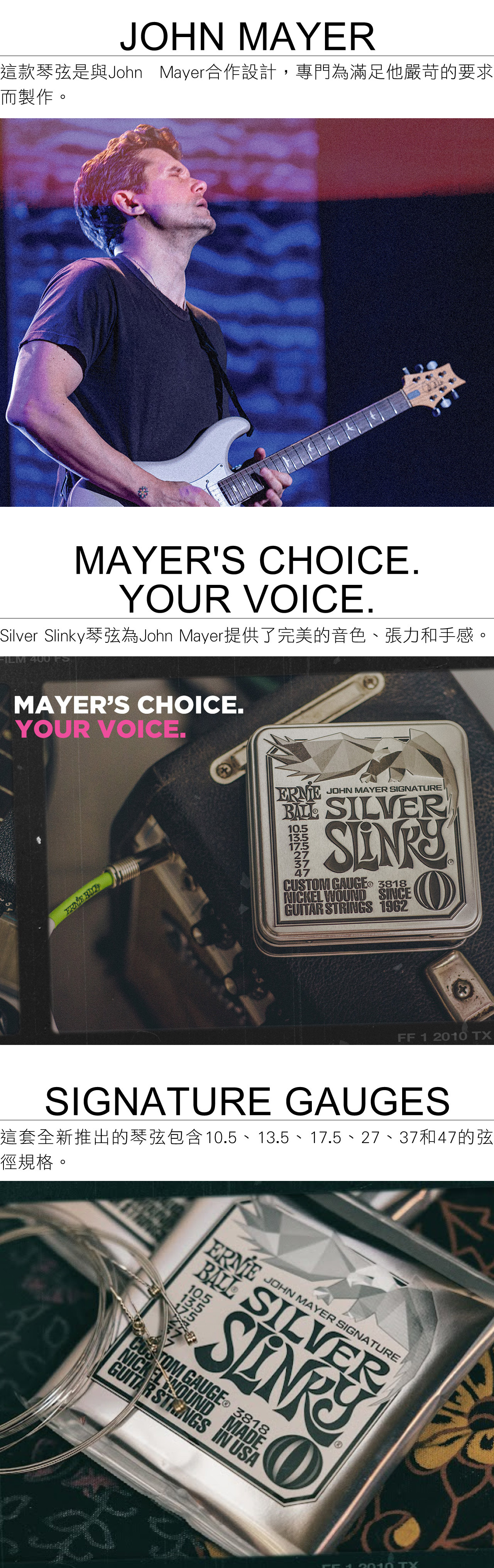 ● 根據John Mayer的喜好所量身打造的Slinky規格