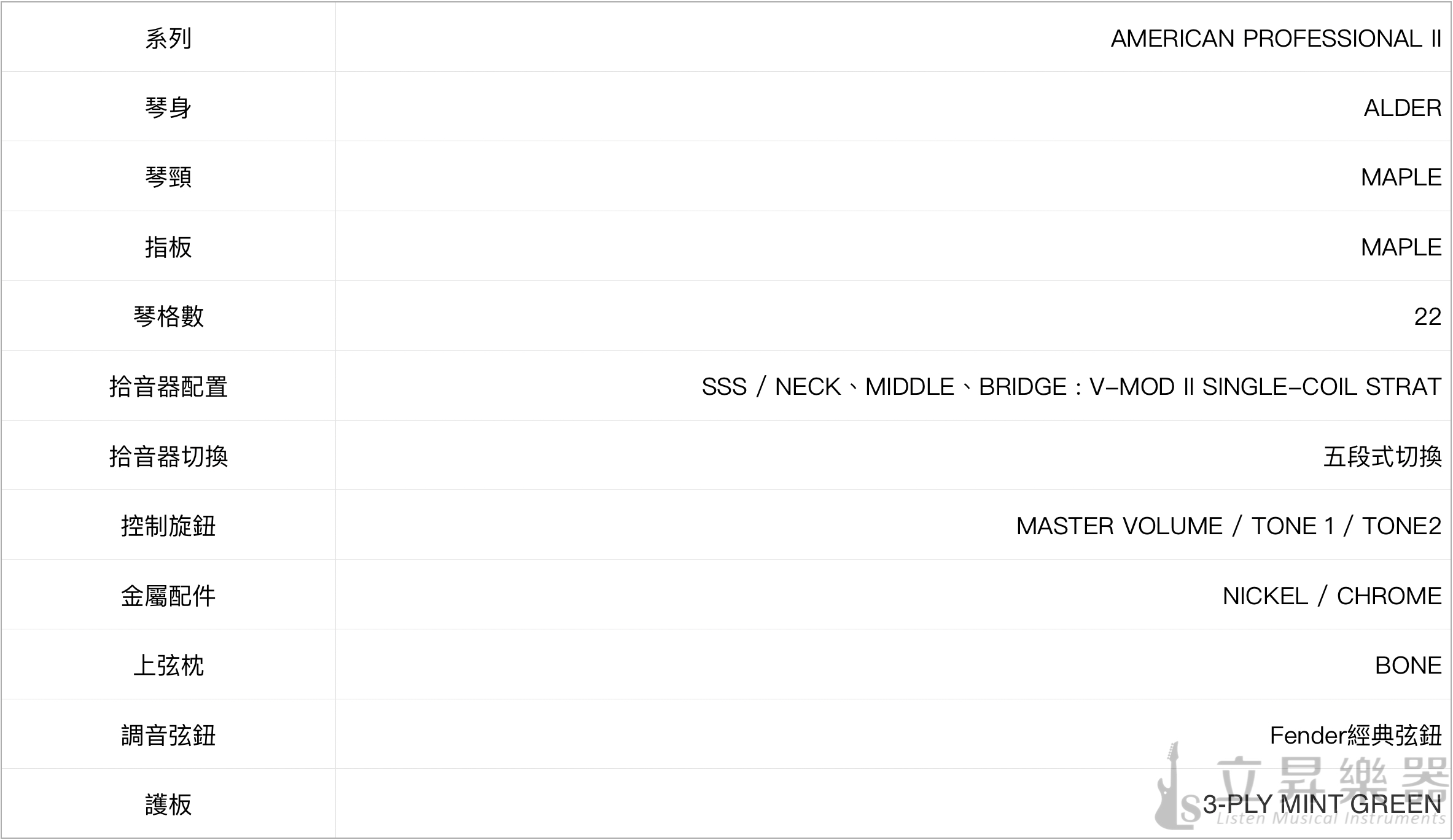 當您彈奏 American Professional ll Stratocaster 並聽到其音色時,便能理解其聲音的多樣性及高舒適度的手感。