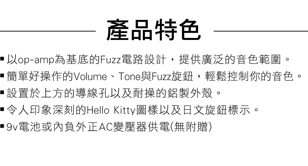 ● 簡單好操作的Volume、Tone與Fuzz旋鈕,輕鬆控制你的音色
