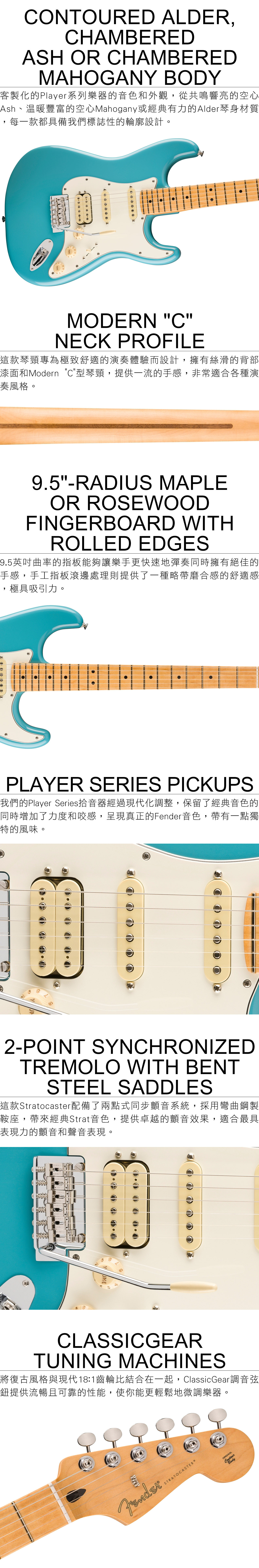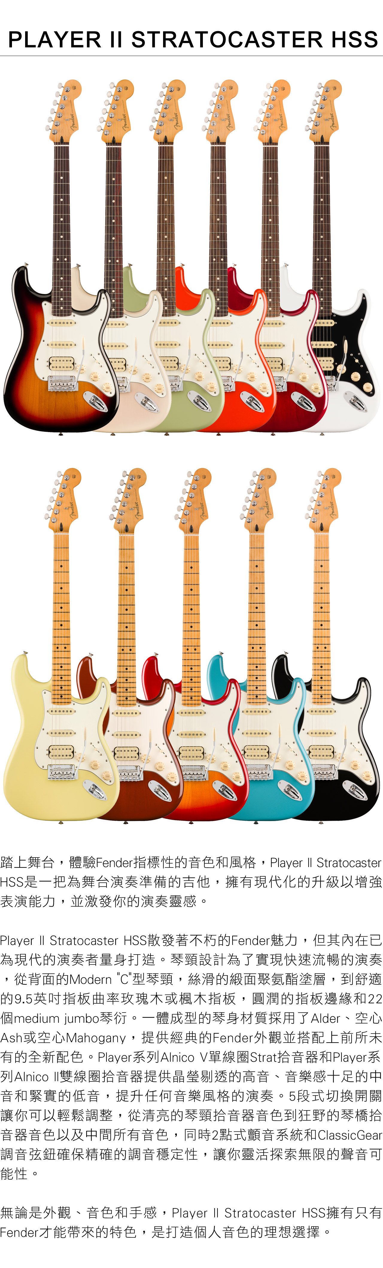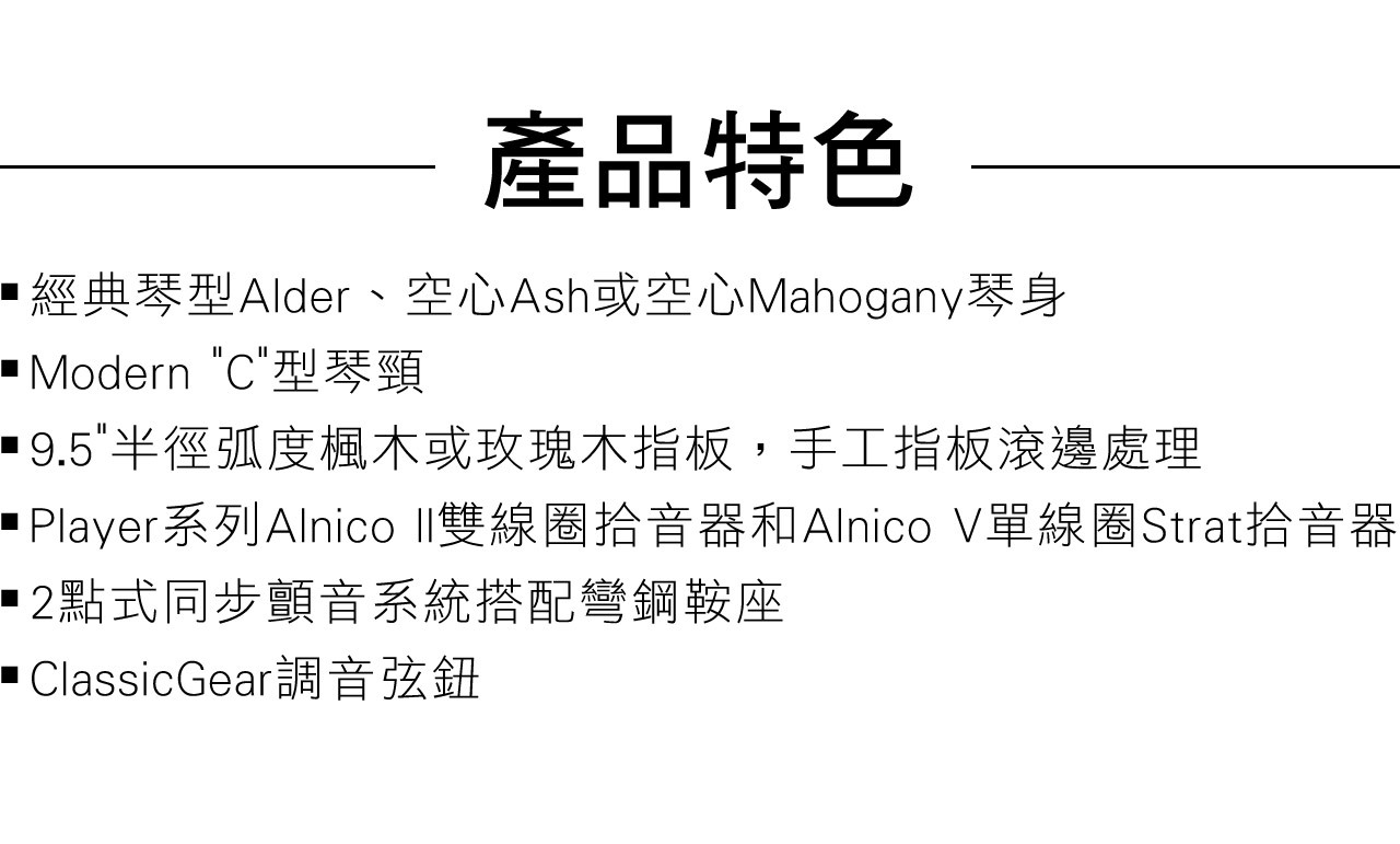● Player系列Alnico II雙線圈拾音器和Alnico V單線圈Strat拾音器