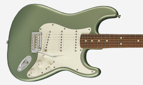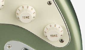 | 現代經典Fender音色,採用 Player SeriesAlnico 5 Strat® Single-Coil × 3 。 | Stratocaster 兩點式同步顫音琴橋, 可實現流暢的顫音動作。 | 專用的控制電路,Tone 1可控制Neck/Middle Pickup, Tone 2 可控制Bridge Pickup。 | ||