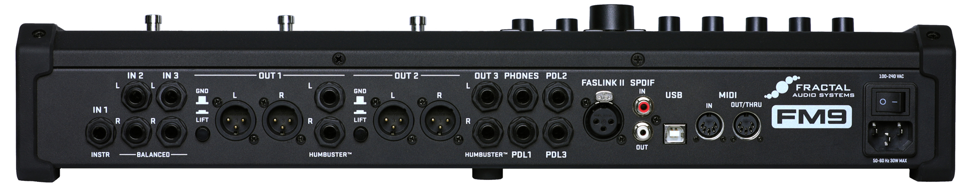USB 連接還提供 USB-over-MIDI,可用於允許 DAW 或其他應用程式向 FM9 發送 MIDI 命令,並且還可用於與配套應用程式 Fractal-Bot 和 FM9-Edit 進行雙向通訊—免費提供世界一流的軟體編輯器/圖書館員。