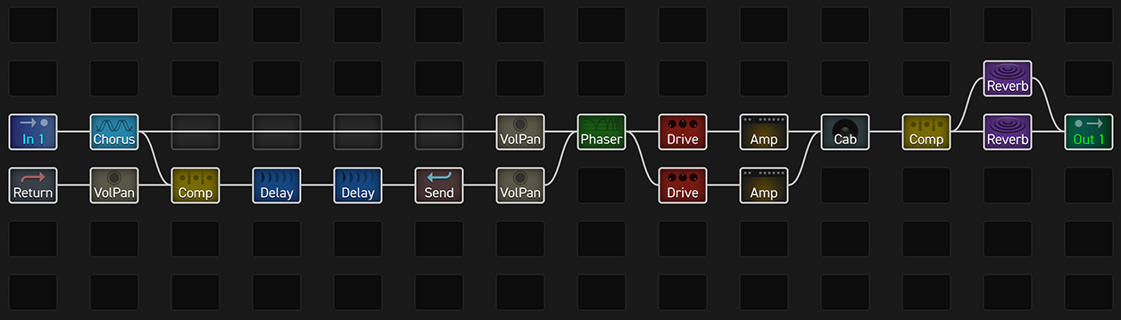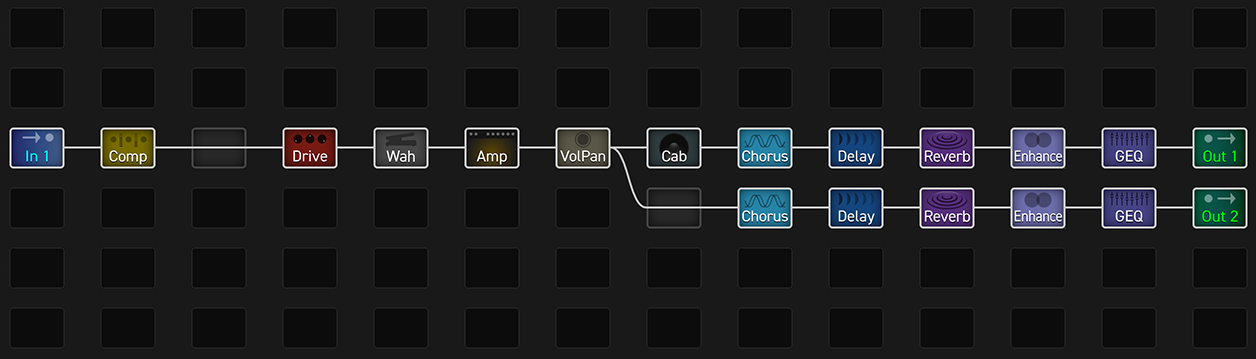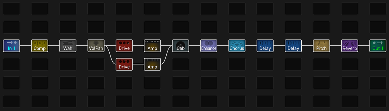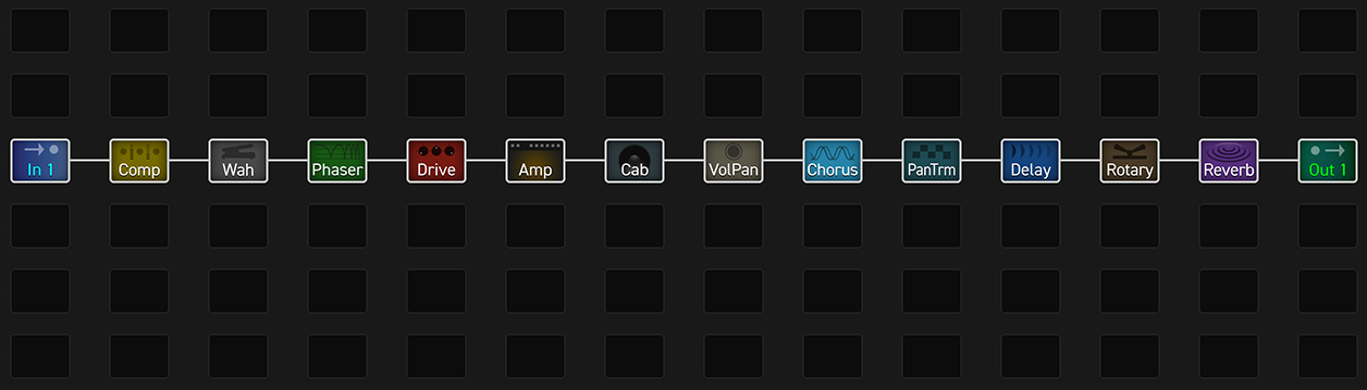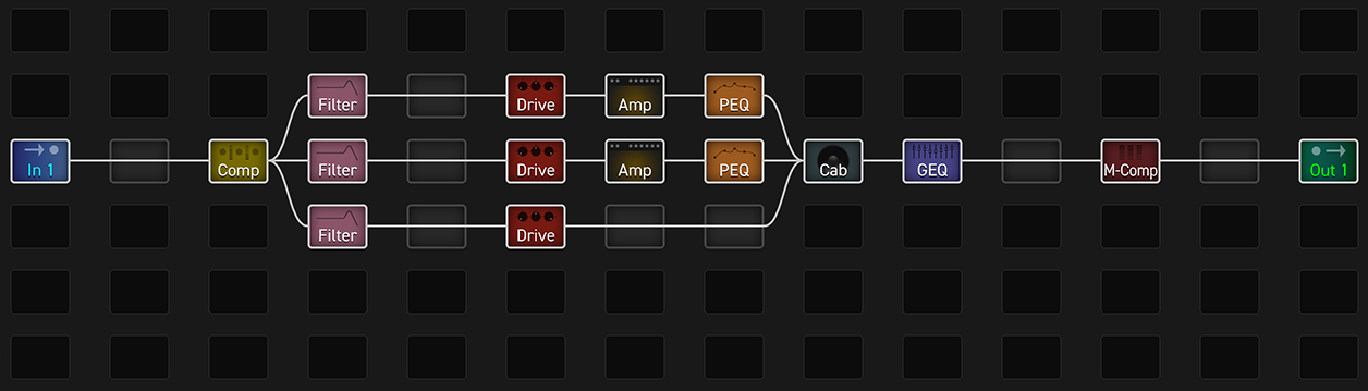 FM9 是我們使用四核心 DSP 架構創建的功能最強大的落地單體。它的預設是在「 區塊 」的「 網格 」上創建的,如下所示,可以利用大量的區塊來提供與巨型模擬設備相媲美或超越的功能。