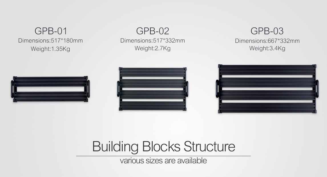 不同於傳統魔鬼氈式設計,這款Guitto 拼裝效果器盤是以拼裝方式來安裝,固定夾可隨時調整,不怕傷到效果器,安裝簡單又快速,現貨供應中。
