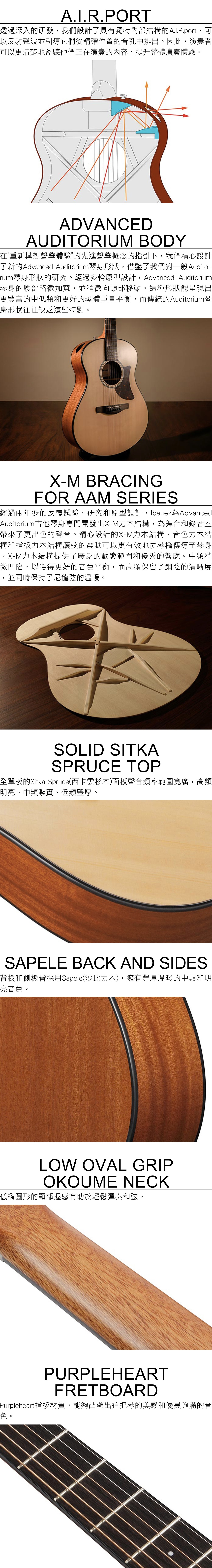 ● Sitka雲杉木面單板搭配Sapele木側板與背板
