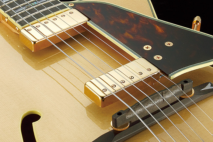 安裝了 GB 特殊拾音器並漂浮在琴體上,消除了反饋並產生了極其溫暖的爵士樂聲音。