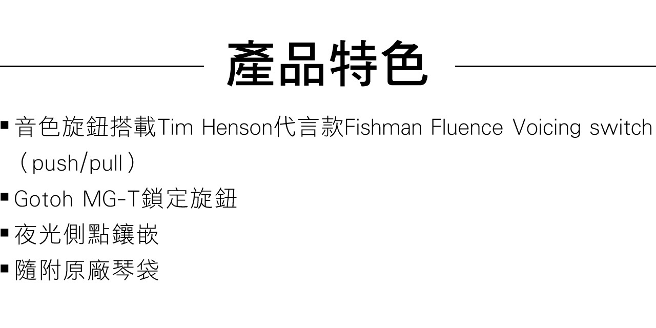 ● 音色旋鈕搭載Tim Henson代言款Fishman Fluence Voicing switch (push/pull)