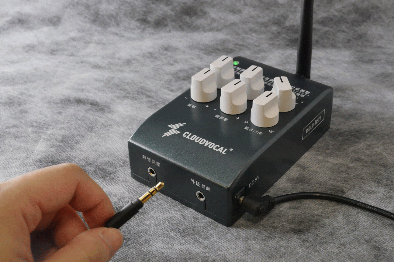 無線配對只要一個按鍵就完成,配對成功後還能自動跳頻保持連線順暢。接上擴音設備,即