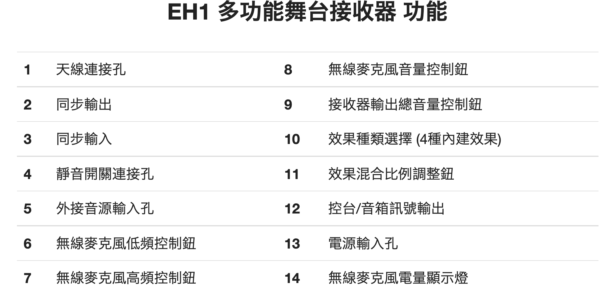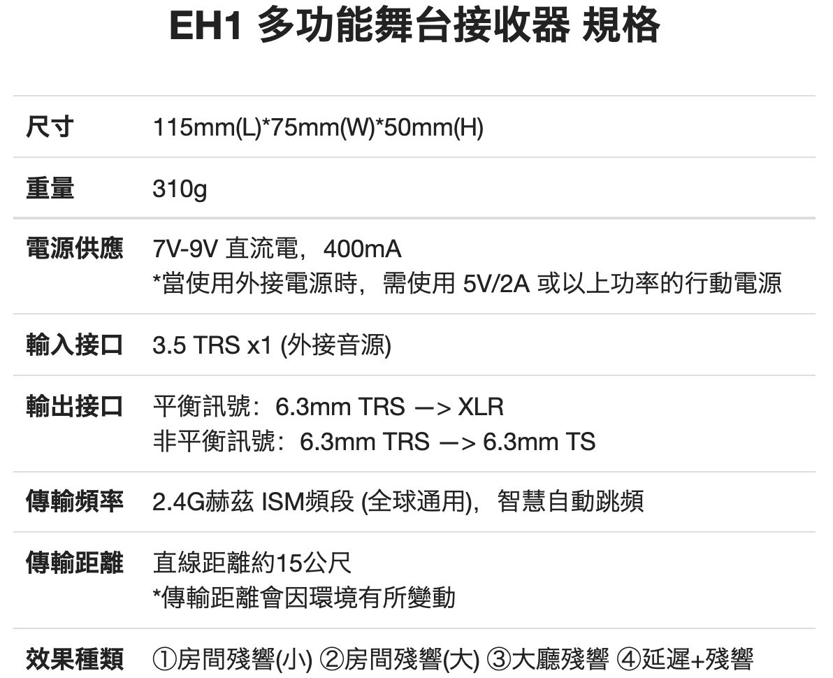 接收器搭載了四種實用效果,讓演奏者能依照環境狀況調整聲音的聽感,讓音樂增添韻味並有更多揮灑空間。