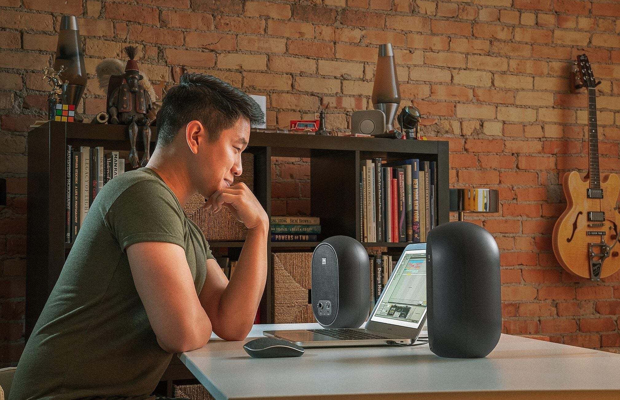 *而以往專業監聽喇叭為著重於聲音表現,總有不小的箱型體積與重量,外型也較為粗曠方正,沒有家用消費級音響那樣的有視覺上的設計感,但這款黑色JBL 104BT喇叭,在每年上萬件參賽產品中,獲得了2020年德國著名reddot紅點設計獎項(Reddot Design Award),而JBL 104 BT系列喇叭,不但能提供相同的專業聲音表現,還能將其濃縮在一個小巧時尚的橢圓箱體中,使用藍芽連接,礙眼的線材都不需要了!如此一來不只居家擺放更方便,視覺上也不顯得突兀,在拍攝串流影音時不但能大方入鏡,甚至還增添了一點新潮時尚感!