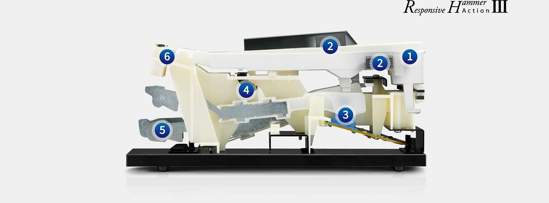 作為同等級數位鋼琴中最真實的鍵盤系統,Responsive Hammer III甚至可以重現平台鋼琴動作的“擒縱“特性。