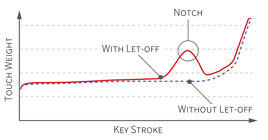 當輕輕彈奏平台鋼琴的琴鍵時,可以感受到這種微妙的阻力感,特別是有技巧的鋼琴家在演奏弱音時,需要藉由這樣的擒縱特性來輔助細膩的演奏。