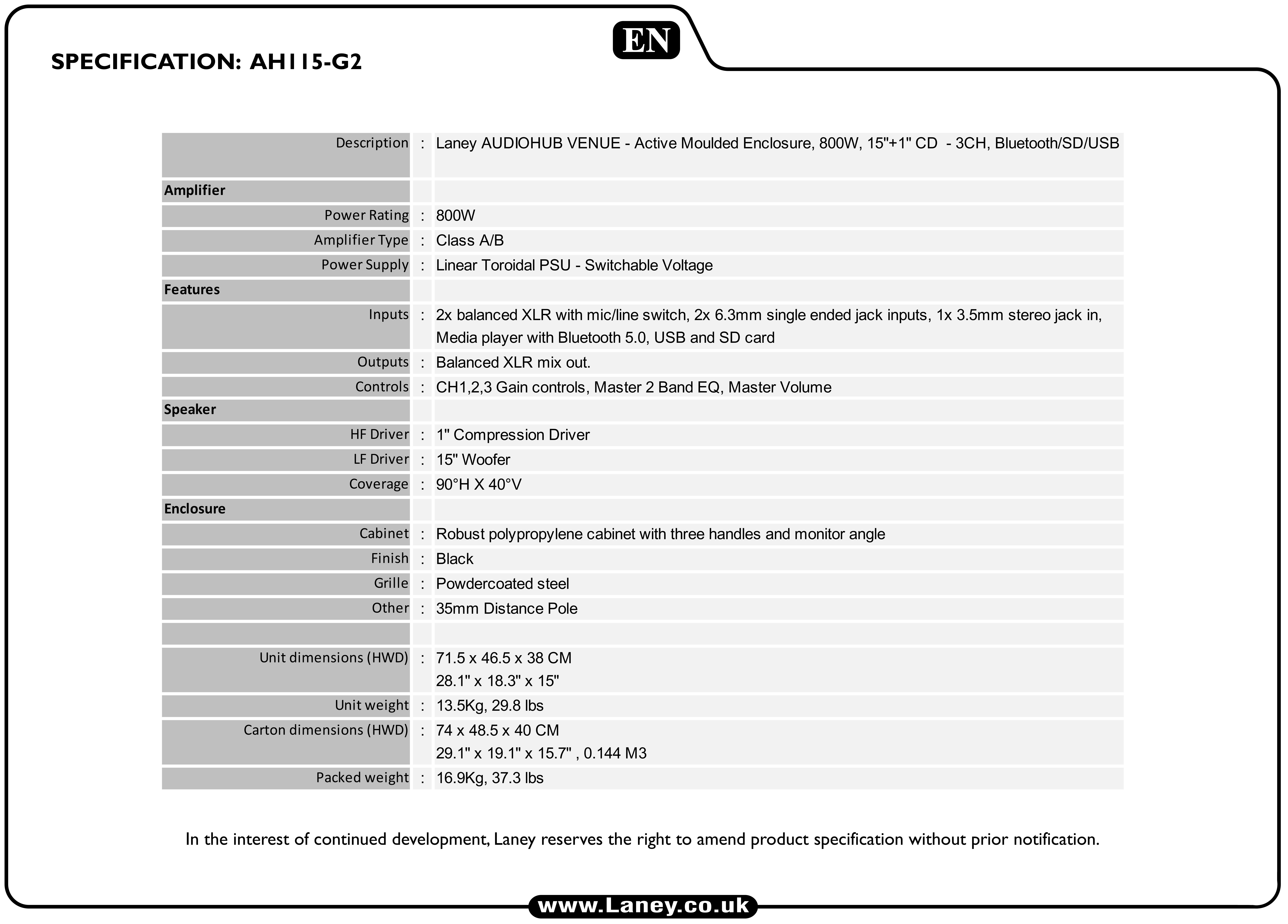 【英國品牌 Laney AH115 主動式喇叭 多功能音箱】