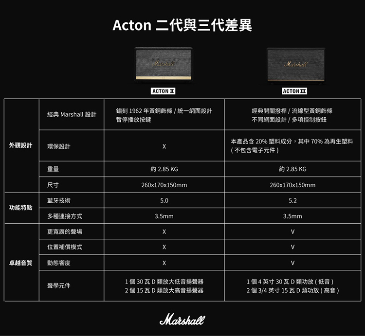 ■ Marshall 標誌型的獨家設計,使其在市面上眾多的喇叭中脫穎而出