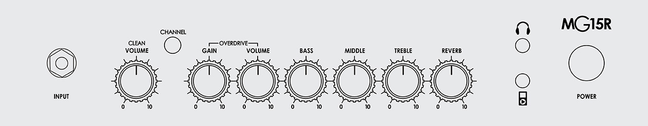 Marshall MG15系列 15瓦功率非常適合樂團練習或家庭使用。擁有兩個頻道,Clean 和 Overdrive,各種音色皆可以表現任何風格。