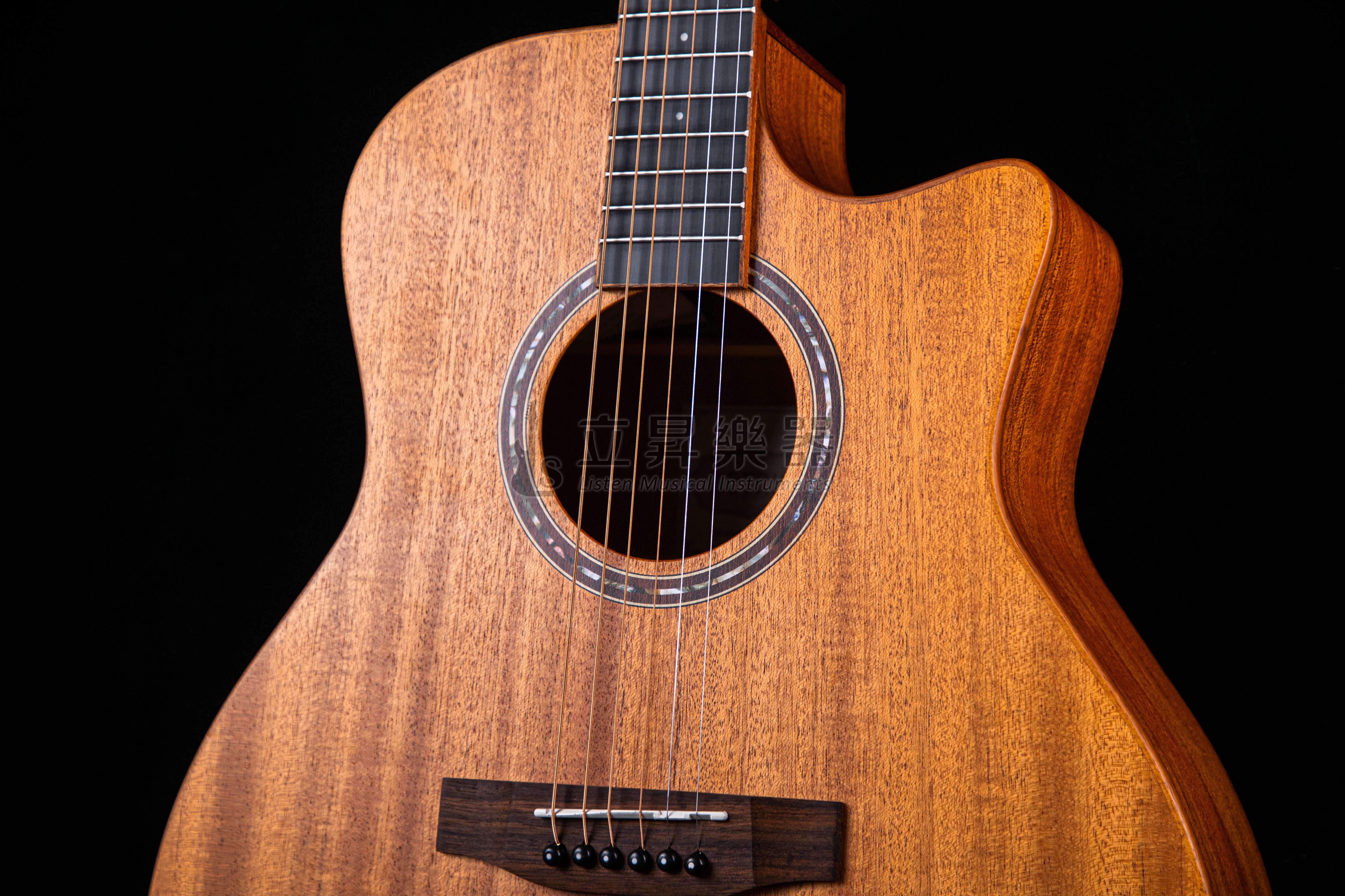 指板使用 Martin 同款高密度科技木,穩定度高,在台灣濕度極高的環境更不易受潮而變形。