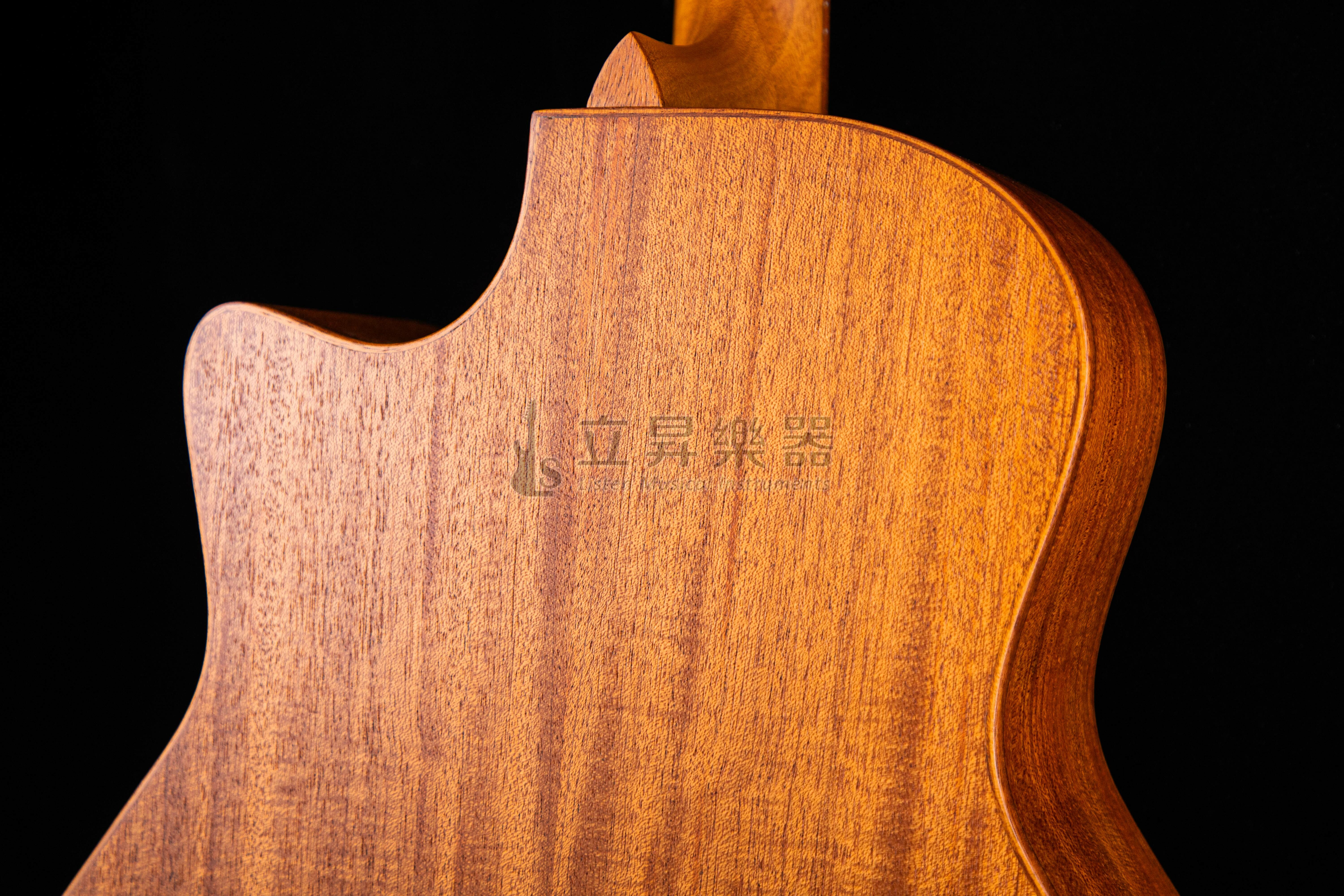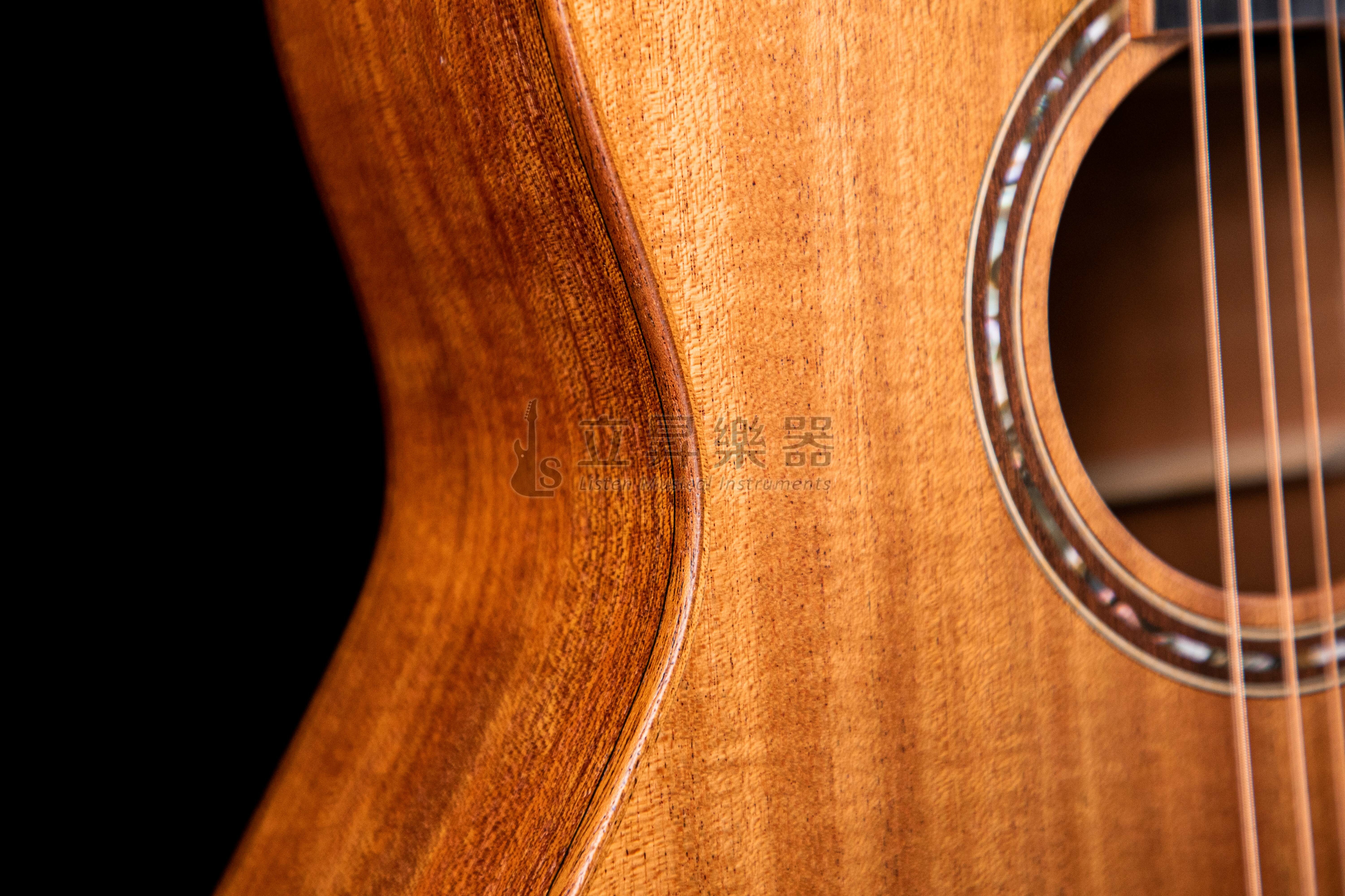 側背板採用桃花心木,音色溫暖厚實,綿密的木紋在視覺上更加分。
