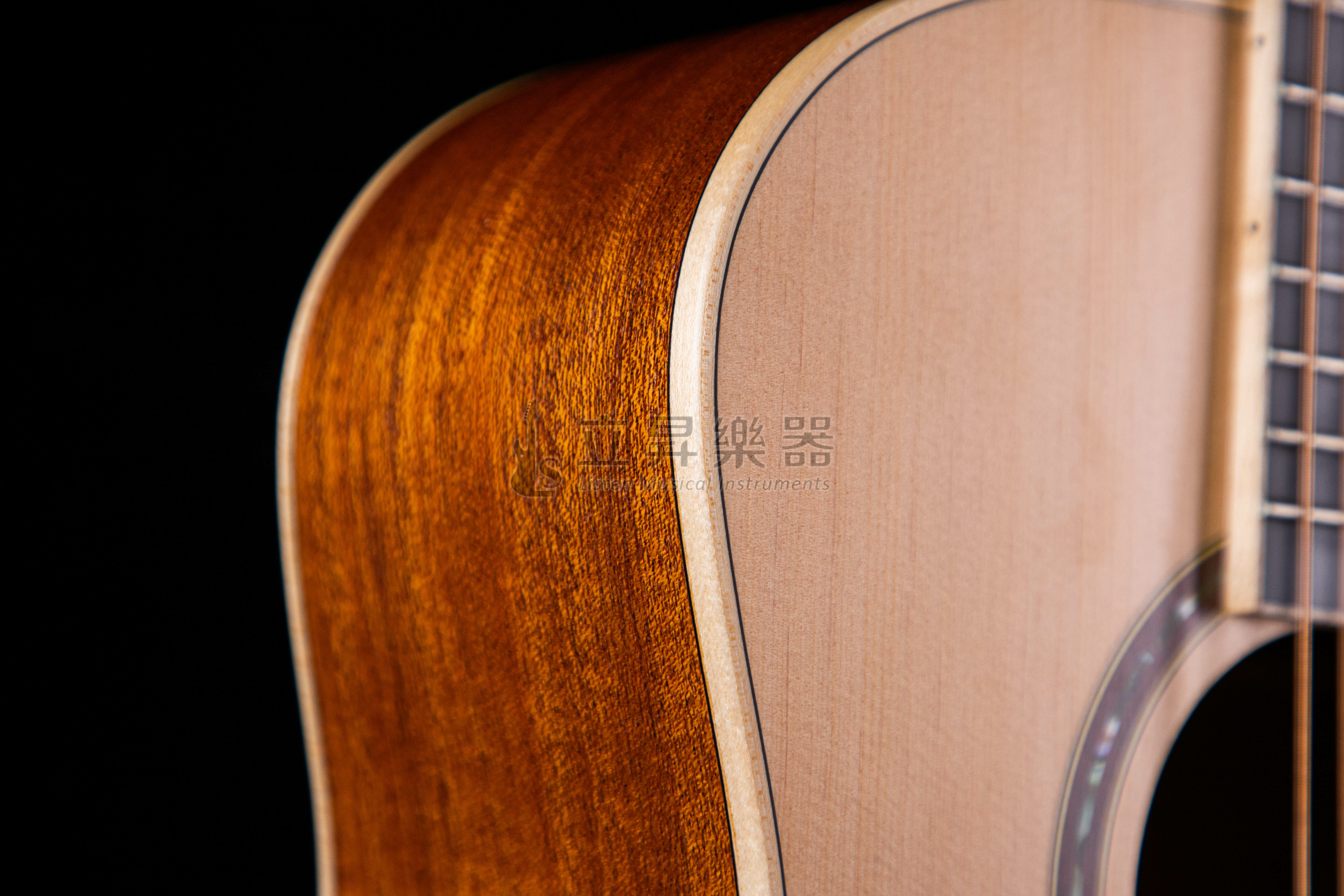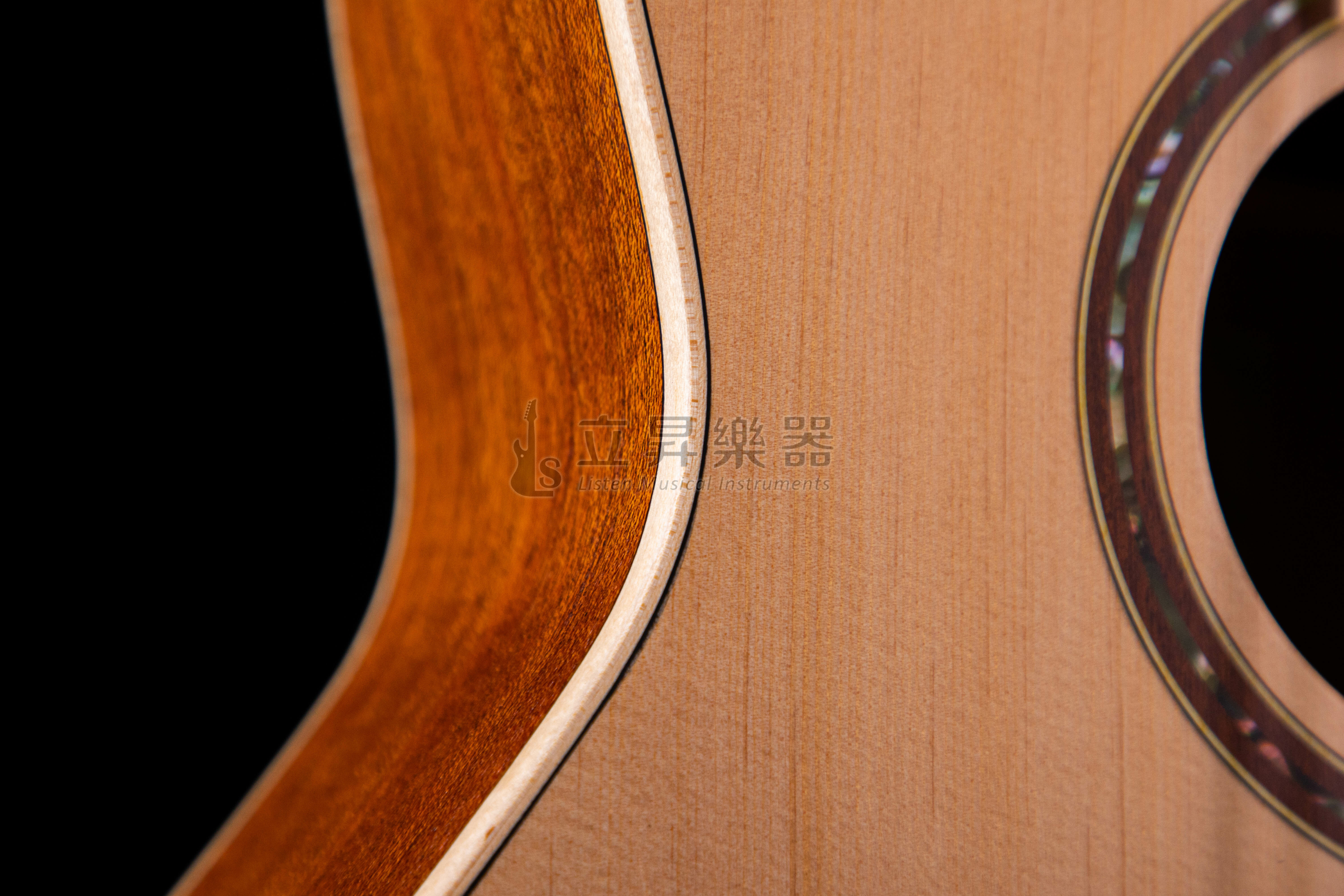 側背板採用桃花心木,音色溫暖厚實,綿密的木紋具有視覺衝擊力。