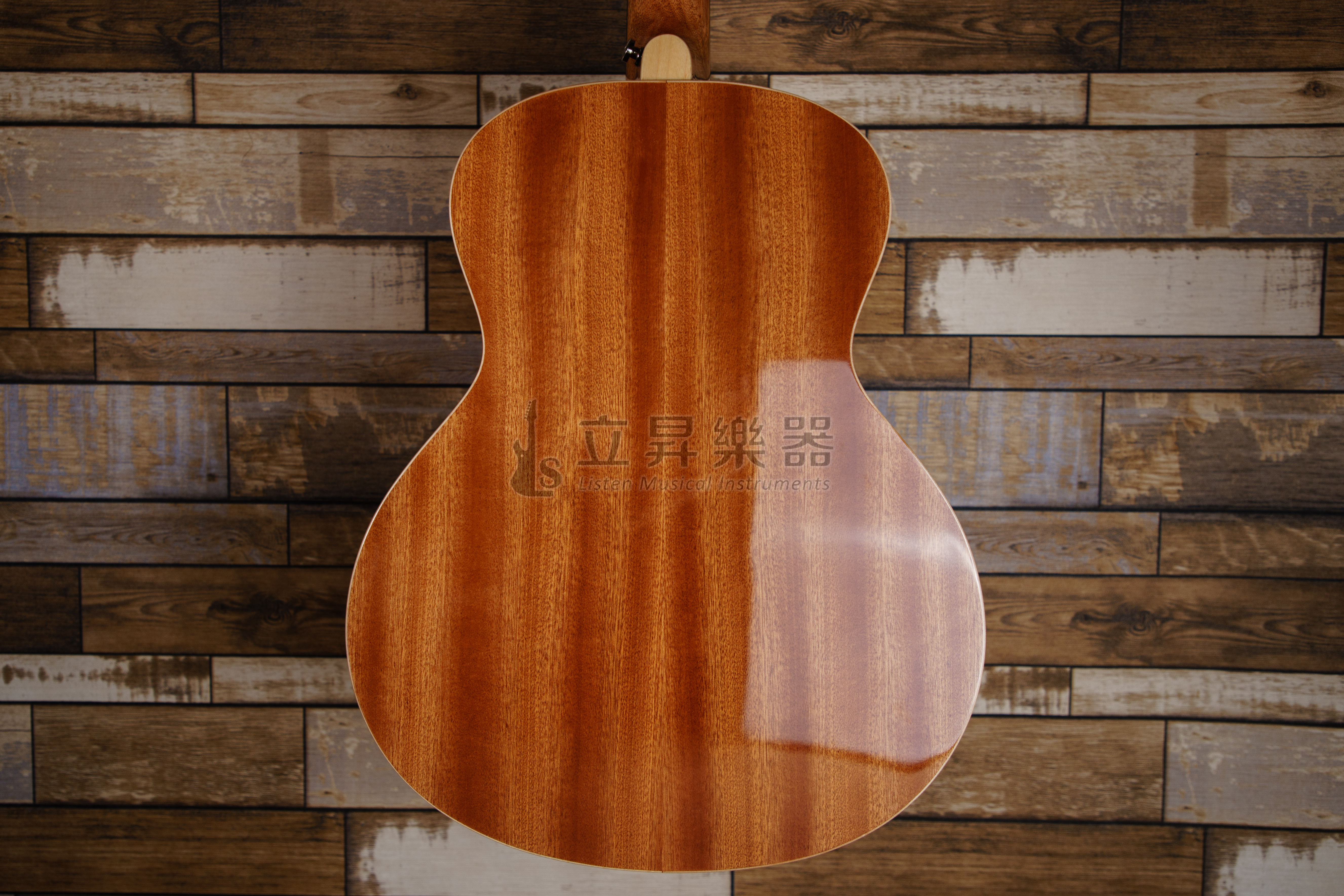 面單系列的音孔圈上同樣使用紅花梨混合鮑魚貝的鑲嵌,不同的材質、不同的色澤,在同一個圓中完美融合。—木一貝,互為其根,剛柔並濟。與指板太極圖案遙相呼應。
