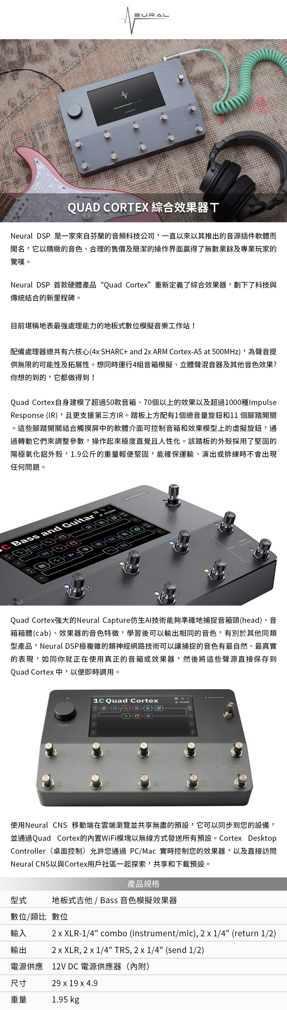 。超過 50 音箱頭、70 種效果器和 1,000 個 IR 的預設逼真音色