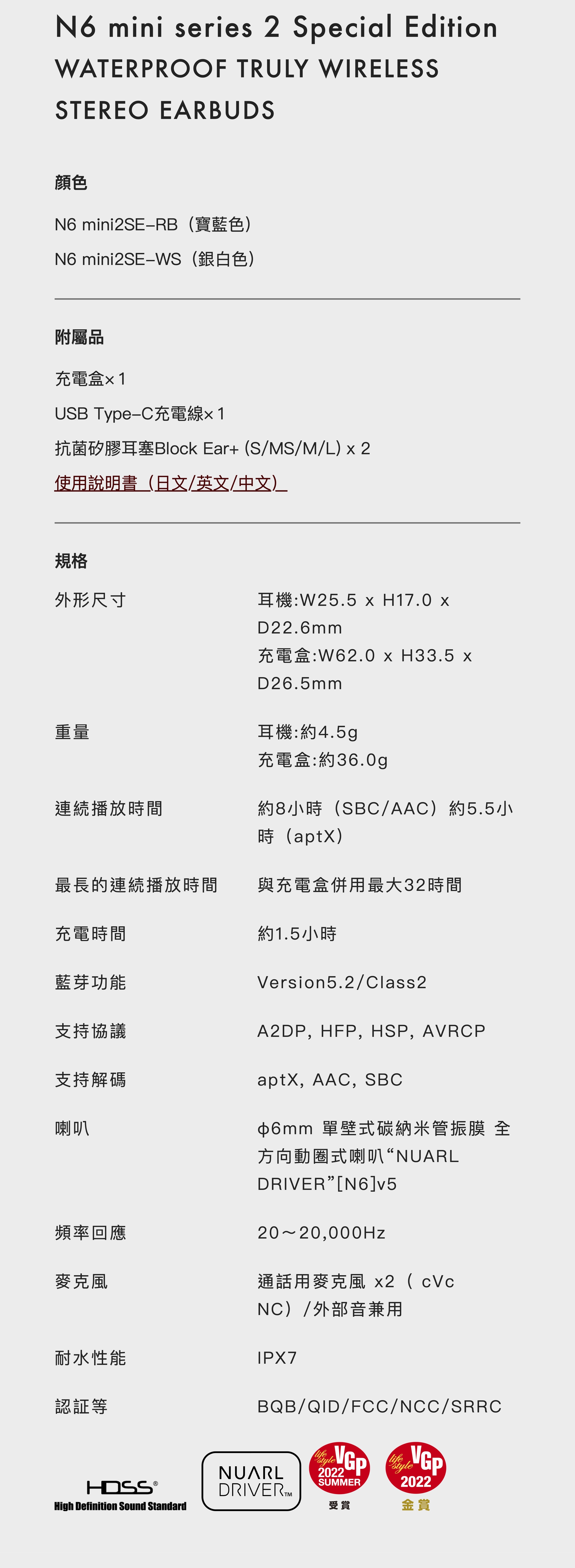 Nuarl N6 mini series 2 Special Edition 升級版 IPX7防水 真無線藍牙耳機 |N6mini2-SE WS 銀白色 / N6mini2-SE RB 寶藍色