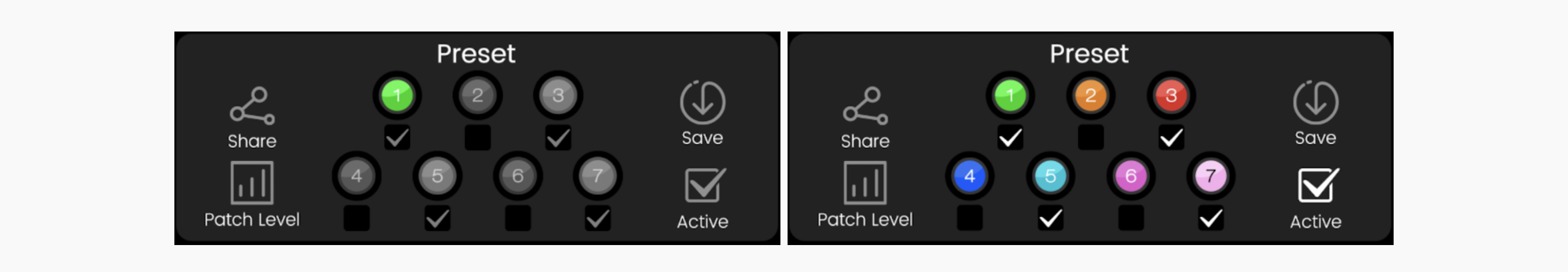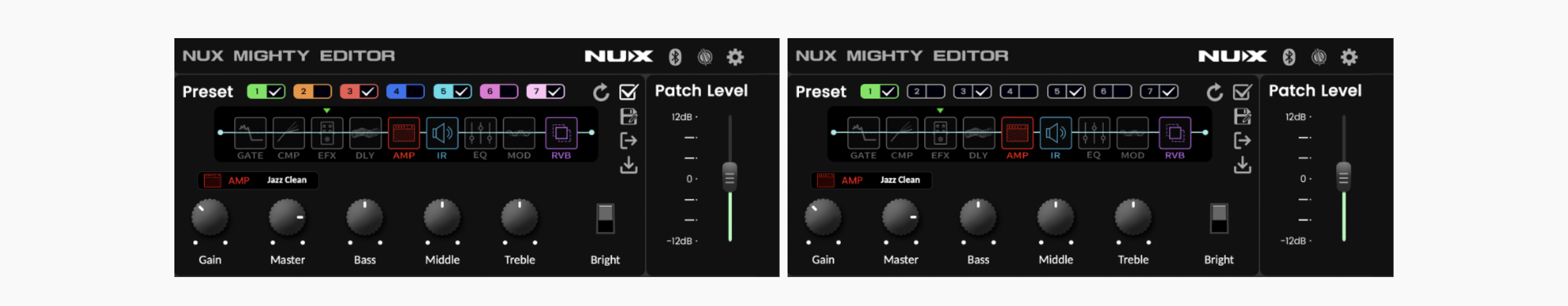 Effects: GATE, CMP, EFX, EQ, MOD, DLY, RVB