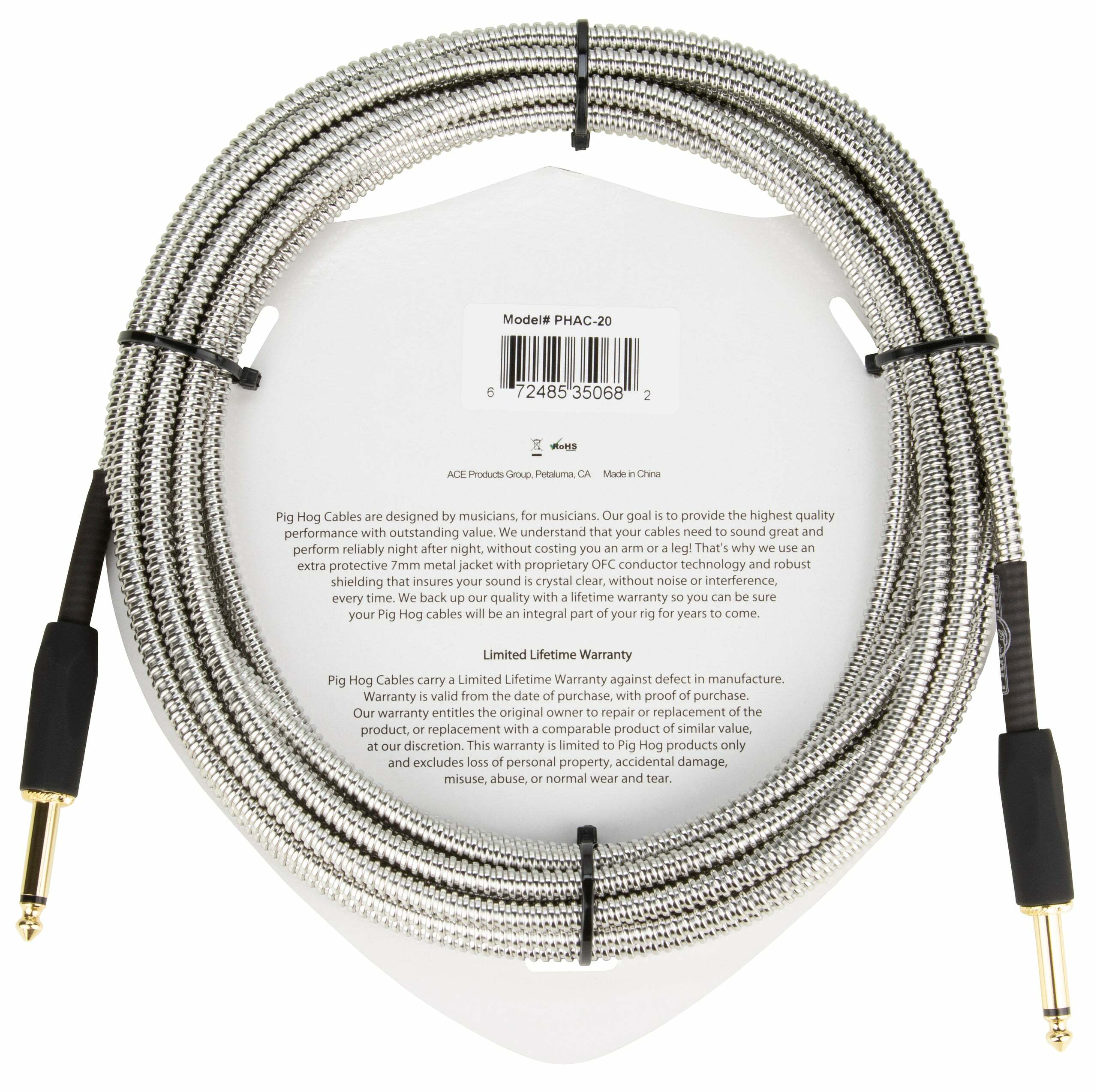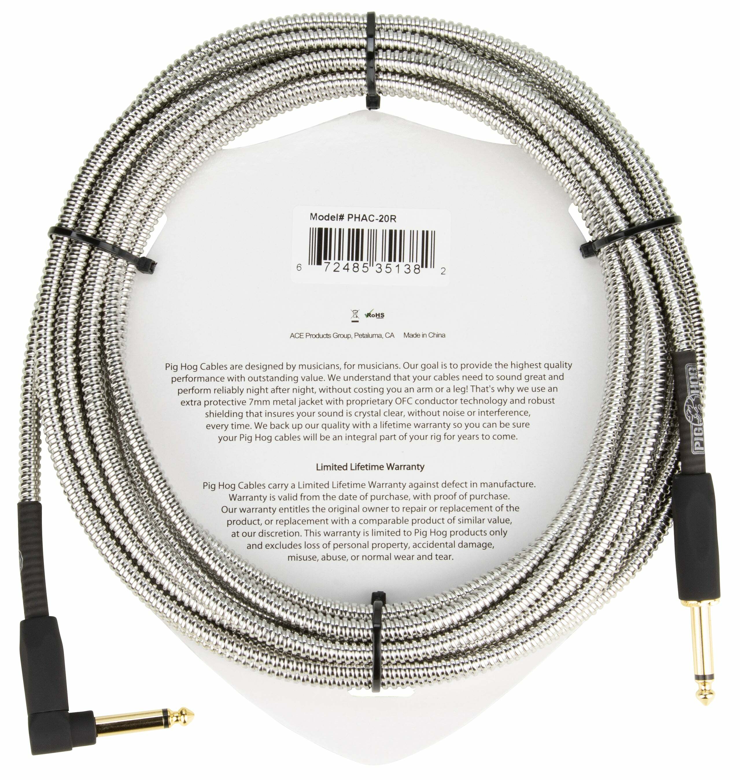 PIG HOG 導線 20呎(6.1m) 金屬外皮|PHAC-20 雙直頭 / PHAC-20R 直L頭