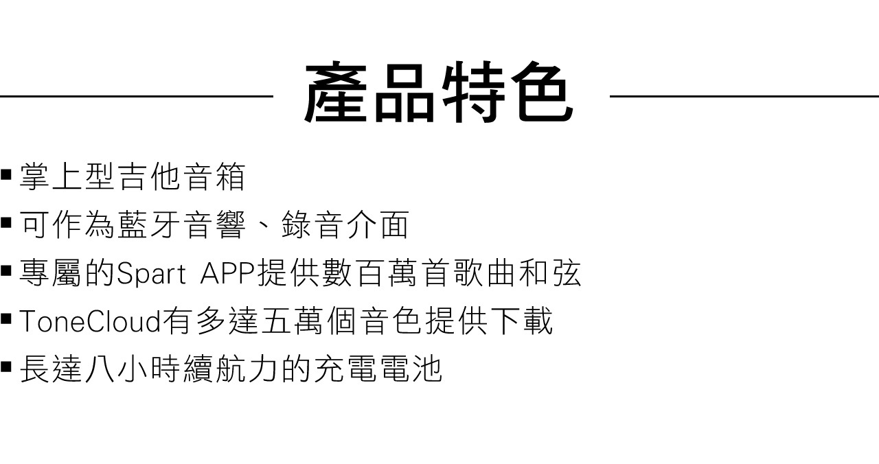 ● 專屬的Spart APP提供數百萬首歌曲和弦