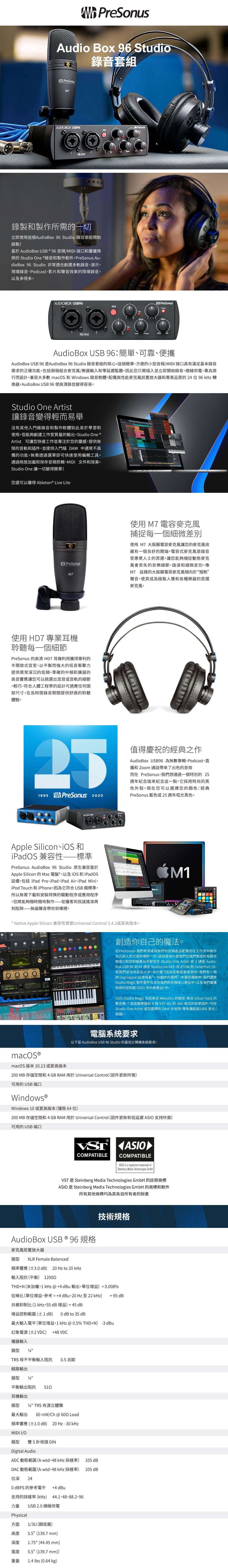 。 Studio One Artist 錄音和製作軟件 (DAW)。最大聲壓級為 136 dB SPL