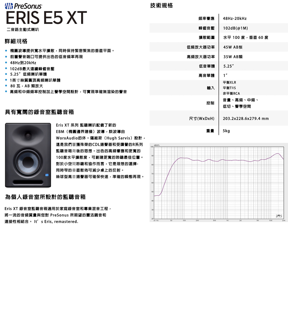 Presonus Eris E5XT 監聽喇叭 5吋單體、低頻加強 (一顆)