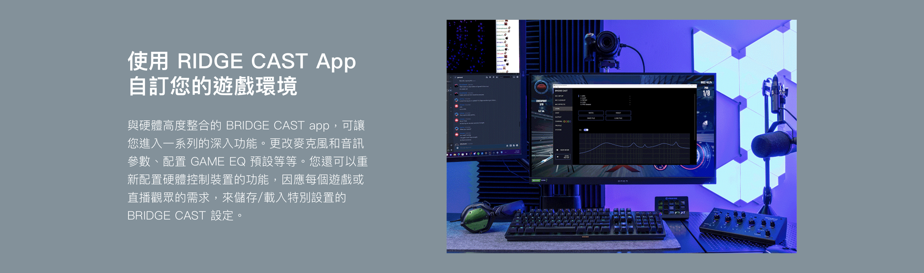 使用 BRIDGE CAST 升級您的電競遊戲配備,這款簡單的 all-in-one 解決方案,提供清晰的音質和殺手級聲音效果,讓您在激烈的競賽中,聆聽卓越的遊戲音質和清晰的直播聲音。