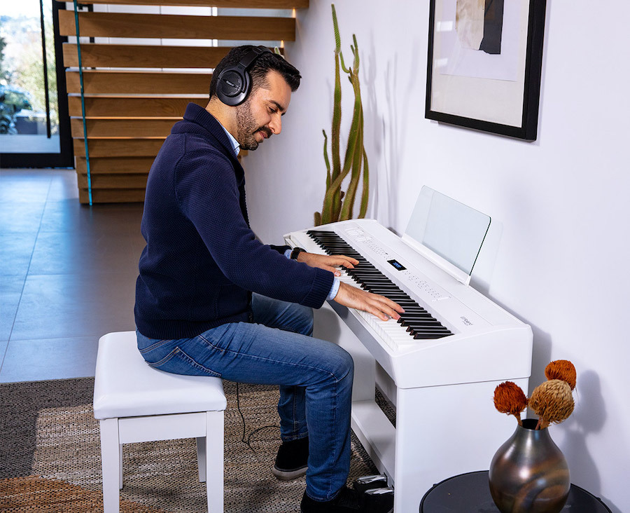 如果您要找尋有專業性能但旗艦級機型價格讓您望之卻步,FP-60X 將深得您心。它是 FP-X 系列的中階機型,精巧而優雅設計提升您居家品味,配備眾多功能可滿足行家級演奏者。FP-60X 的核心是 Roland 的SuperNATURAL Piano 鋼琴音源和動態的88 鍵 PHA-4 標準鍵盤,還有精選的傳統鋼琴音色,能透過 Piano Designer 功能進行更深入的個人化設定。此外,還有多種樂器聲音提供您探索其他的音樂風格,音場效果與 SuperNATURAL 鋼琴建模音色相輔相成之下,可實現令人驚嘆的真實感,還有強大的立體聲音響系統,以及用於享受私人練琴時光的沉浸式耳機 3D 音場效果。