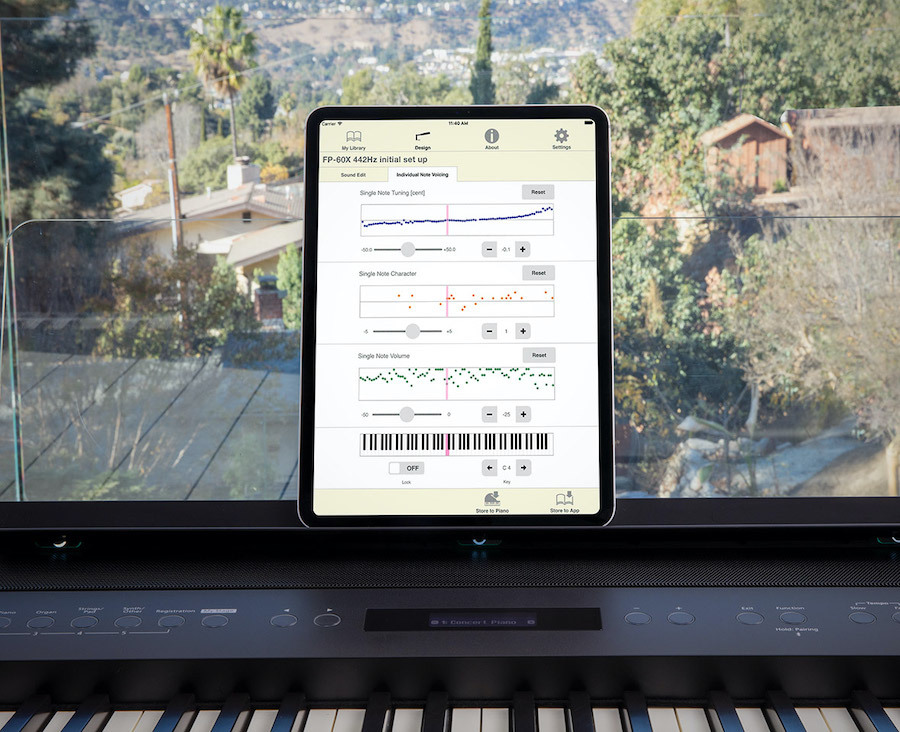 FP-60X 採用 Roland 備受讚譽的 SuperNATURAL Piano 鋼琴音源,來捕捉您演奏風格的每一抹細膩表情,鉅細靡遺展現從含蓄的弱音演奏到鏗鏘有力的強音。更進一步,您可以透過等化器面板調整低、中,和高音域的音調,並使用內建 Piano Designer 來微調每一個音符的音調,深入雕琢和自訂您的專屬聲音。FP-60X 還新增 My Stage 功能,其聲音結合了特選的鋼琴音色和音場類型,提供從琴房到大型音樂廳等各種場地的沉浸式演奏體驗。