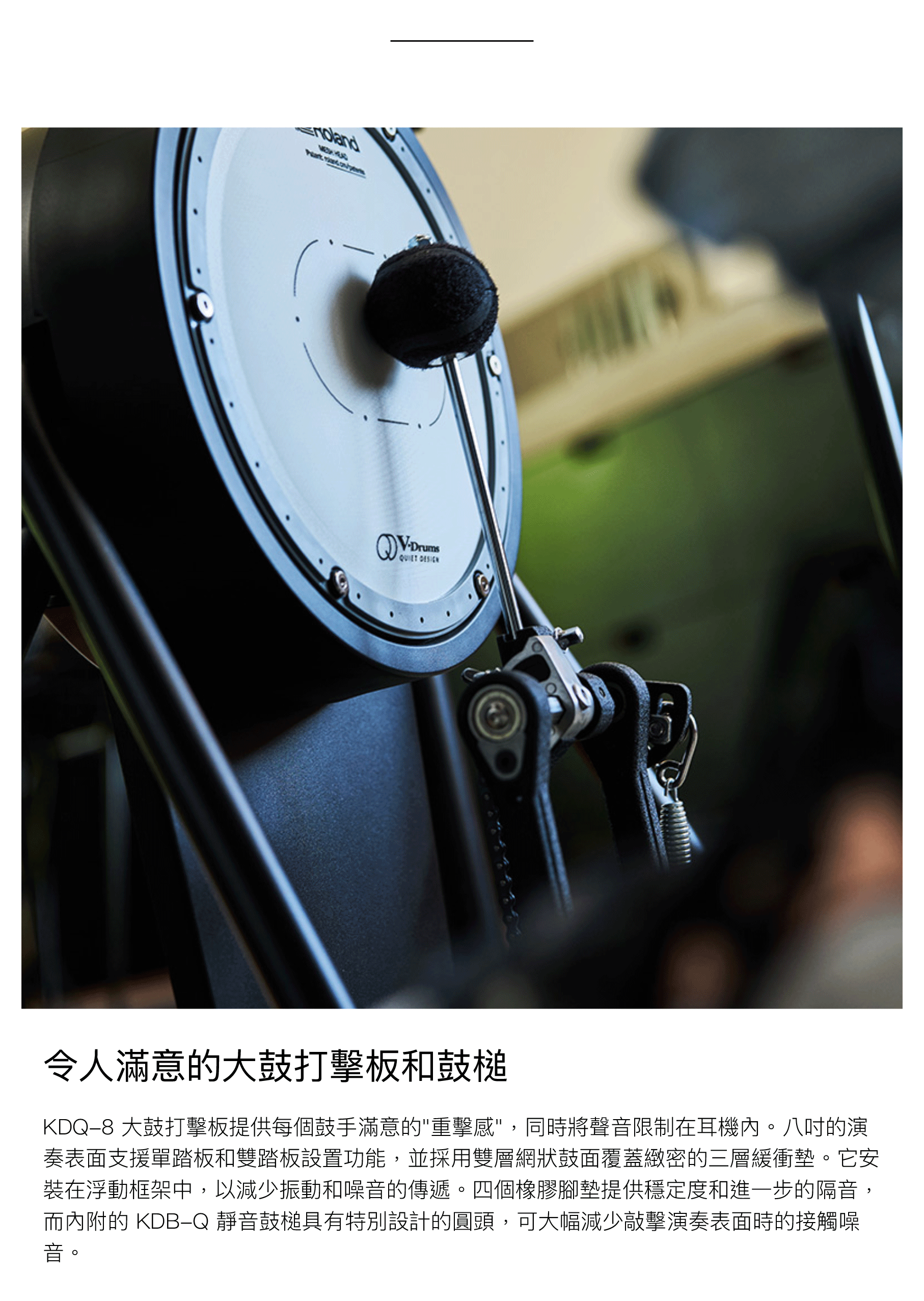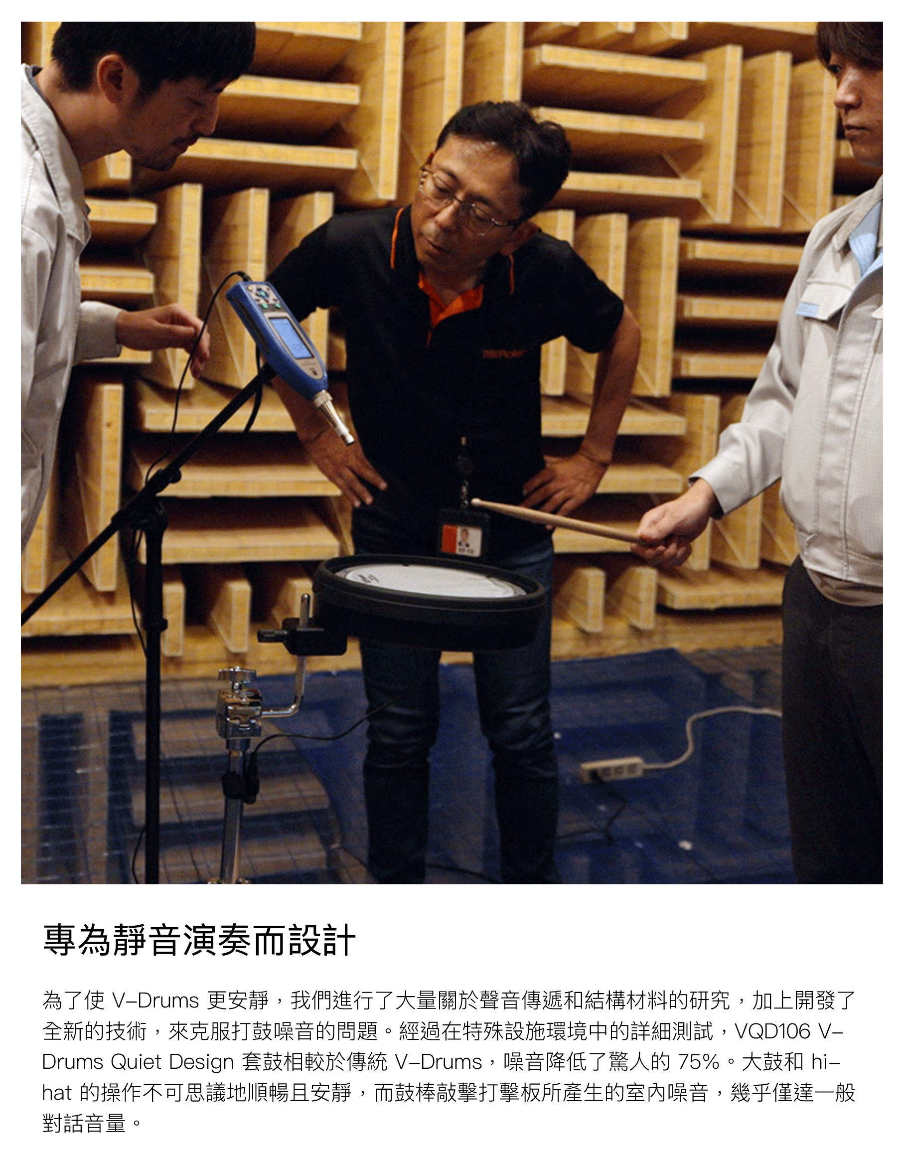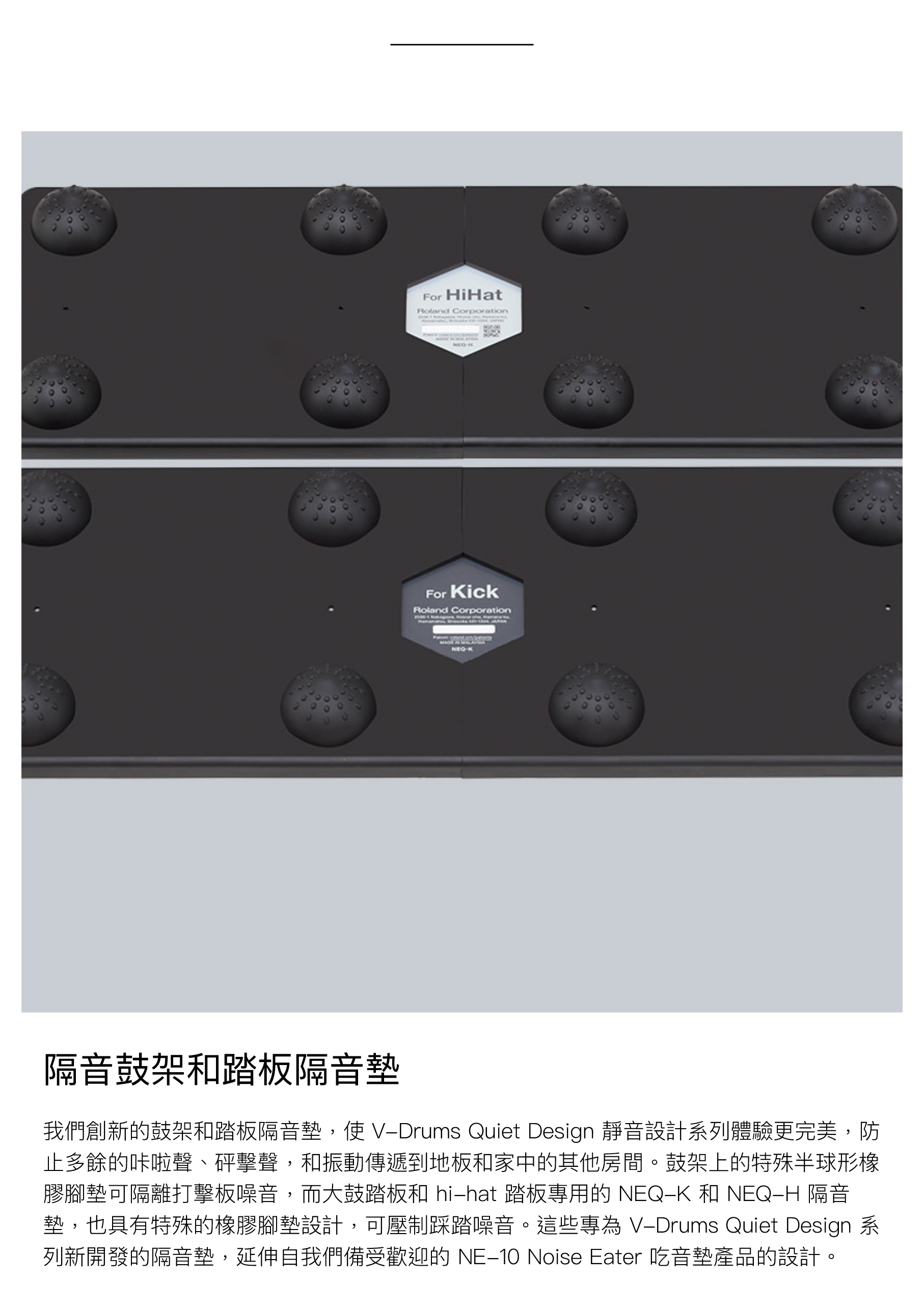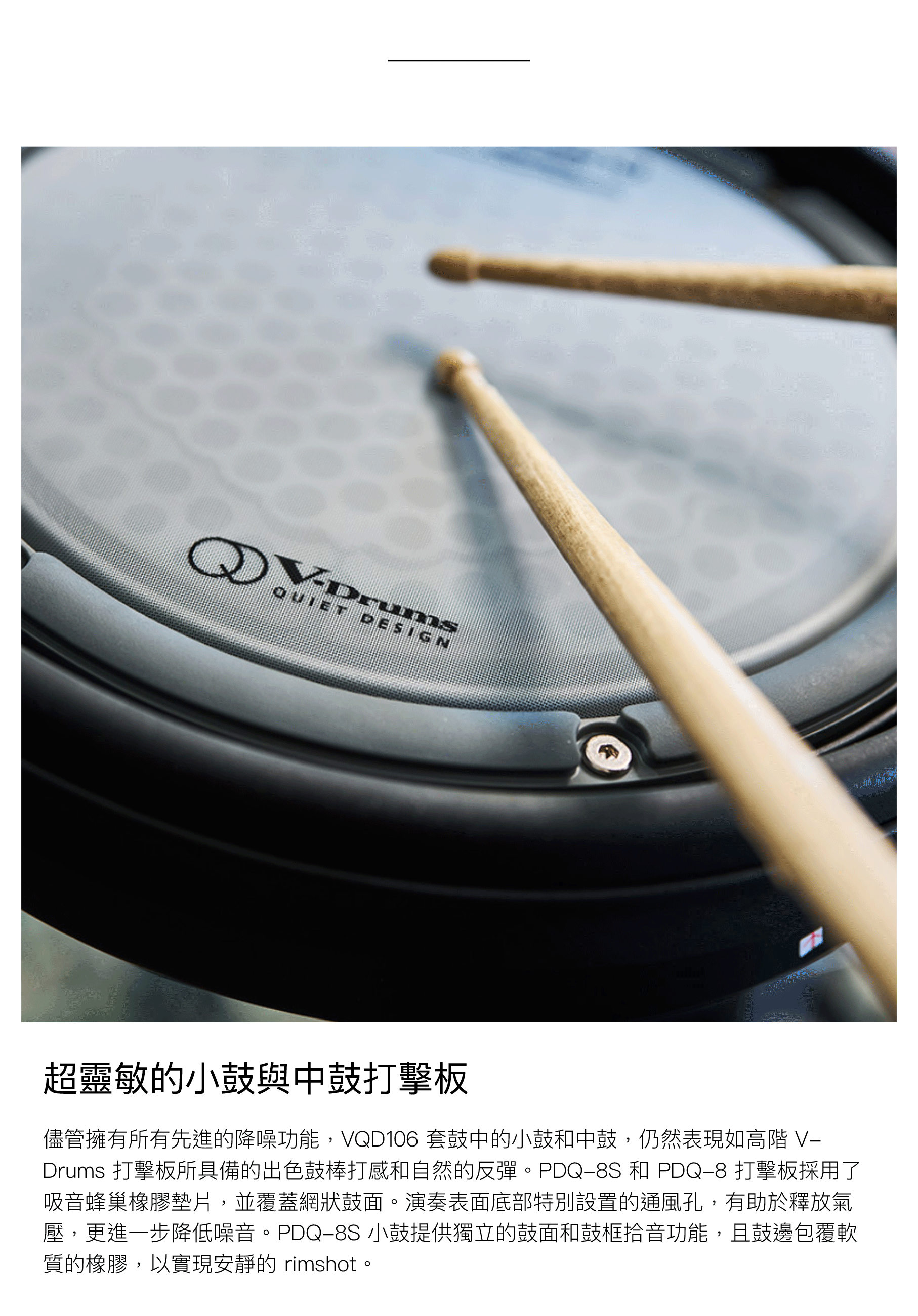 與傳統 V-Drums 套鼓相比,演奏噪音可降低高達 75%