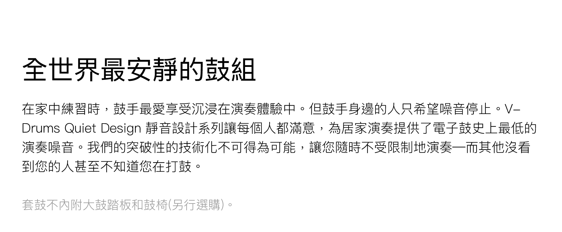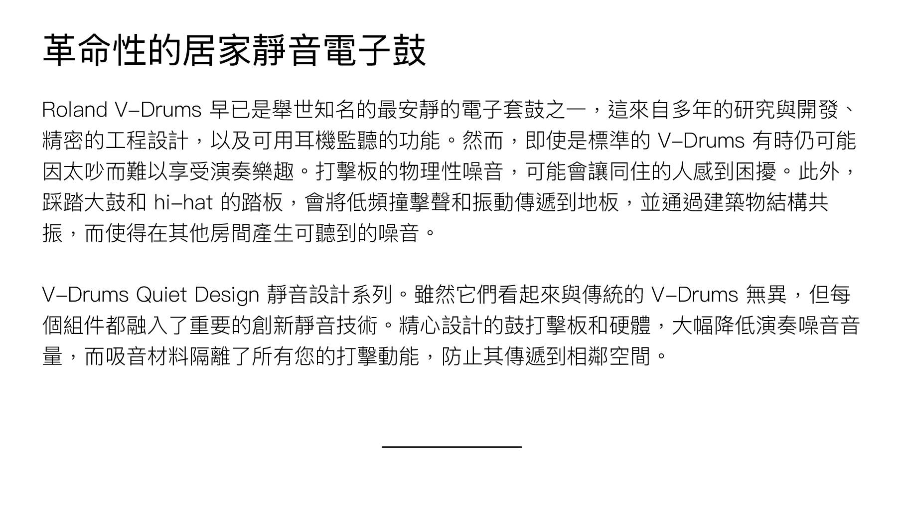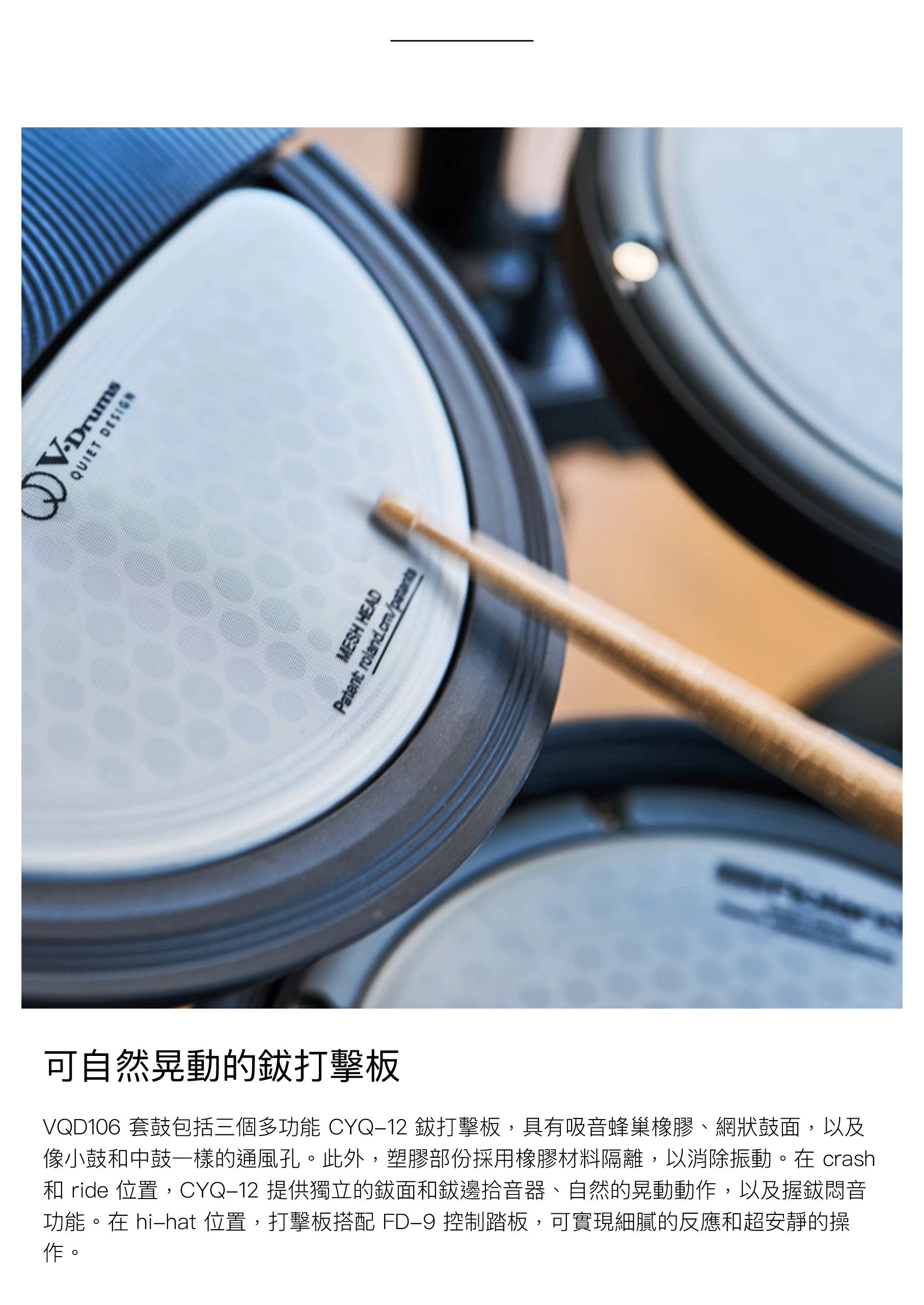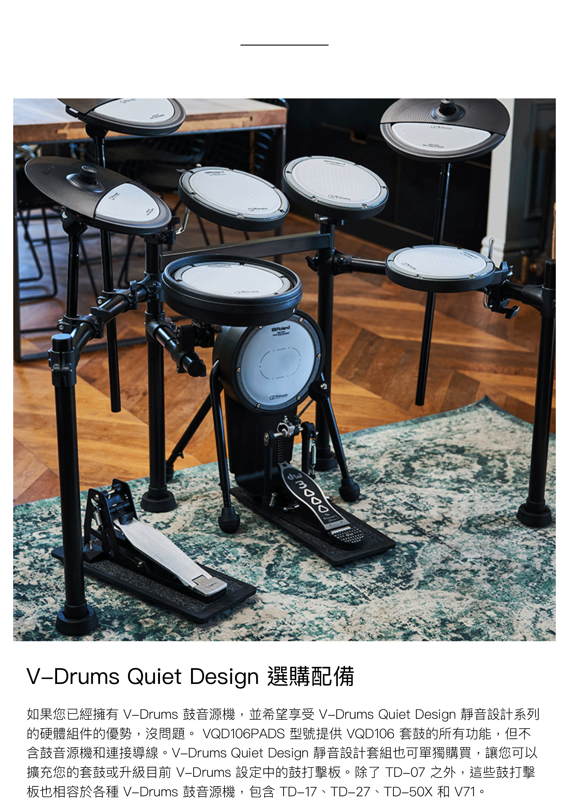 與傳統 V-Drums 套鼓相比,演奏噪音可降低高達 75%