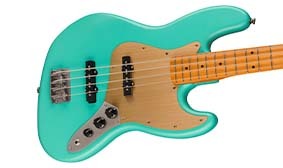 陽極氧化髮絲紋鋁合金的護板不但非常耐用,金色面板更美觀耐用。 | 採用Fender設計的復古音色拾音器,提供真實經典的音色。 | ||